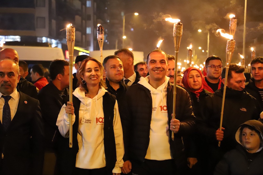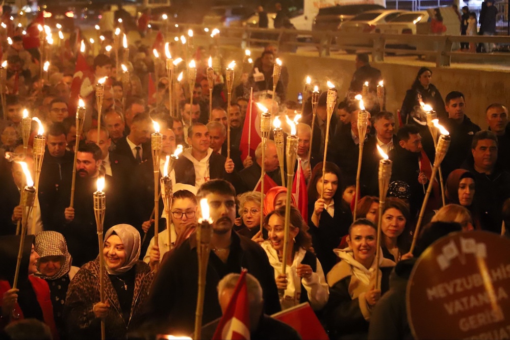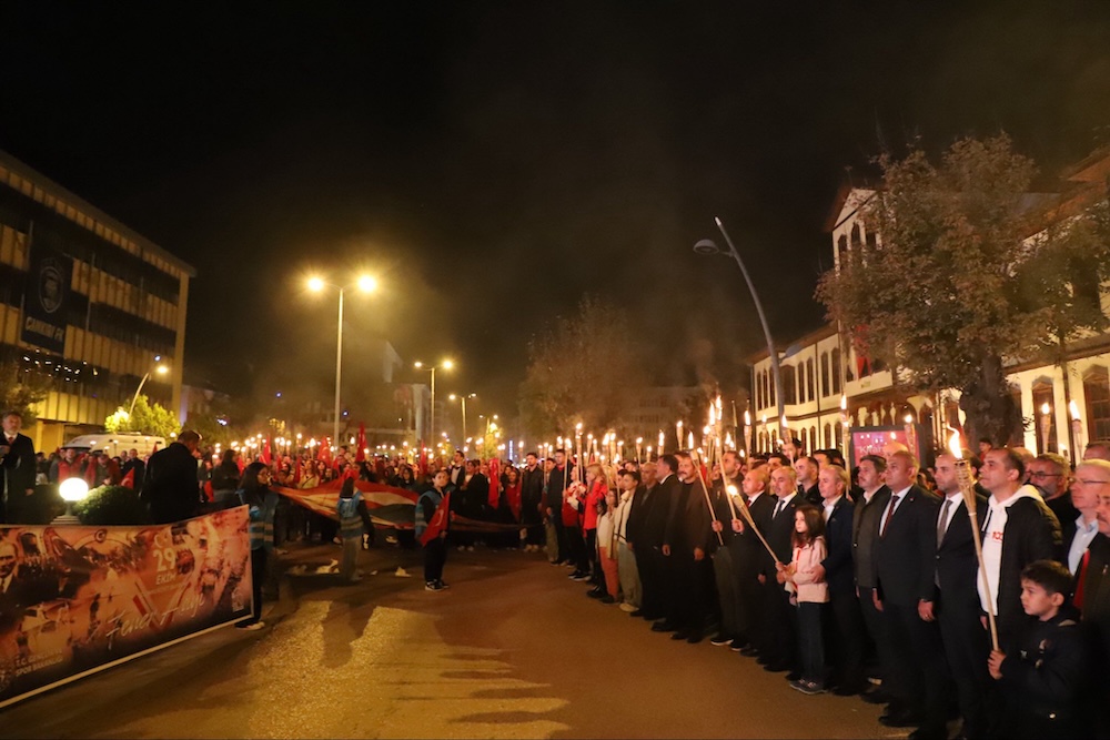 Akşam saatlerinde ise Cumhuriyet coşkusu sokaklara taştı. Fener Alayı etkinliği, Migros önünden başlayarak Fuar Yolu ve Atatürk Bulvarı üzerinden Atatürk Anıtı’na kadar devam etti. Etkinlik, saygı duruşu ve İstiklal Marşı’nın okunmasıyla sona erdi. Binlerce vatandaş ellerinde Türk bayraklarıyla yürüyüşe katılarak 29 Ekim ruhunu bir kez daha yaşadı.