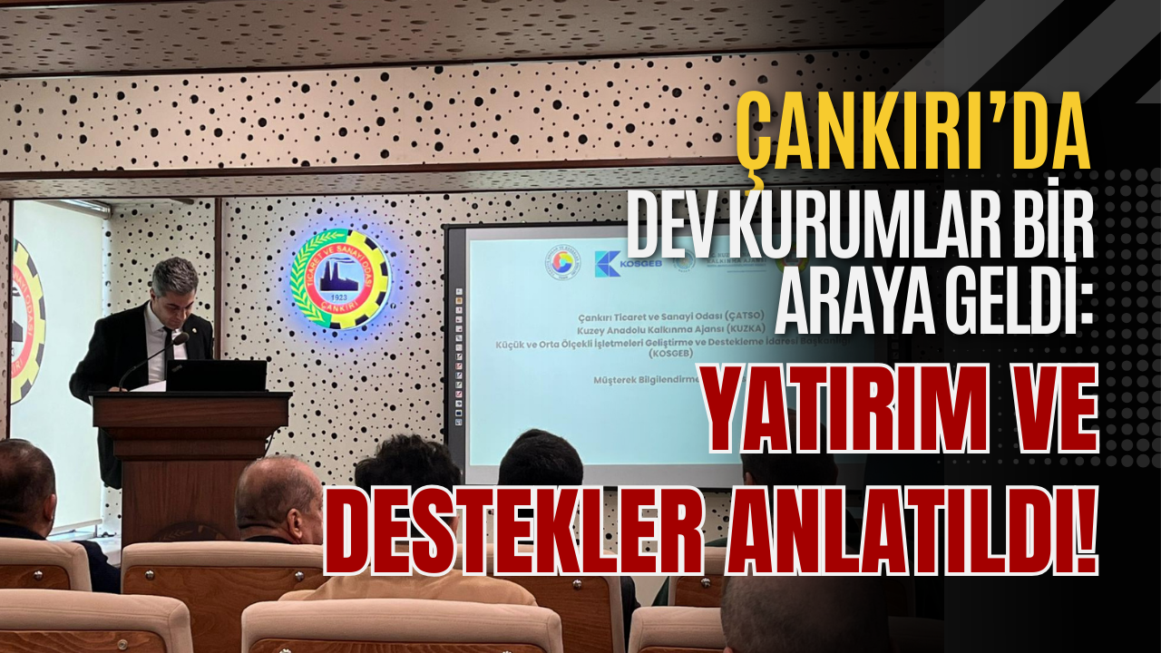 ÖZEL HABER/ Çankırı’da iş dünyasına yönelik destekler ve yatırım fırsatlarının ele alındığı önemli bir bilgilendirme toplantısı gerçekleştirildi. Çankırı Ticaret ve Sanayi Odası (ÇATSO), Kuzey Anadolu Kalkınma Ajansı (KUZKA) ve Küçük ve Orta Ölçekli İşletmeleri Geliştirme ve Destekleme İdaresi Başkanlığı (KOSGEB) iş birliğinde düzenlenen müşterek bilgilendirme toplantısı, yoğun katılımla yapıldı.