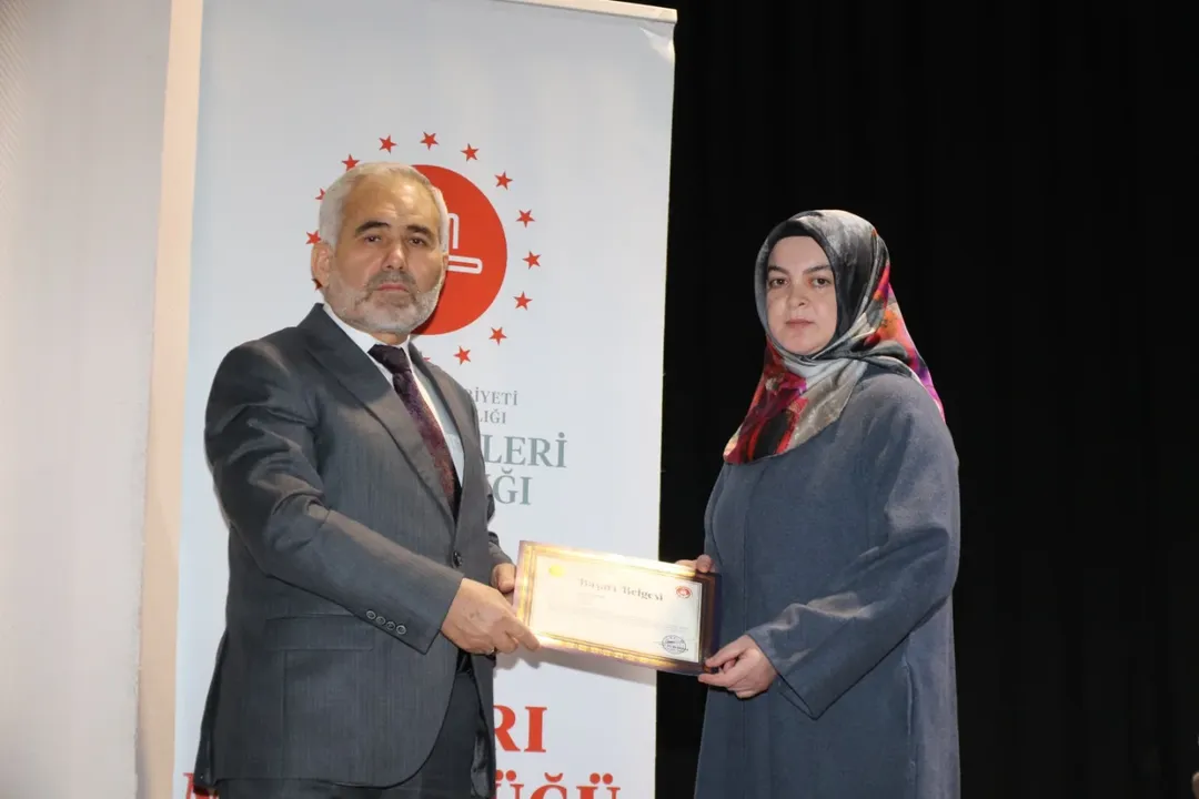 Toplantı kapsamında Bağımlılıkla Mücadele İl Koordinatörü Hüsnü GÜRLÜ ve Aile ve Dini Rehberlik Bürosu (ADRB) Koordinatörü Şükran YÜZBAŞI’ya başarı belgeleri takdim edildi. Dilek ve temenniler bölümünde din görevlilerinin soruları yanıtlandı, görüşleri alındı.