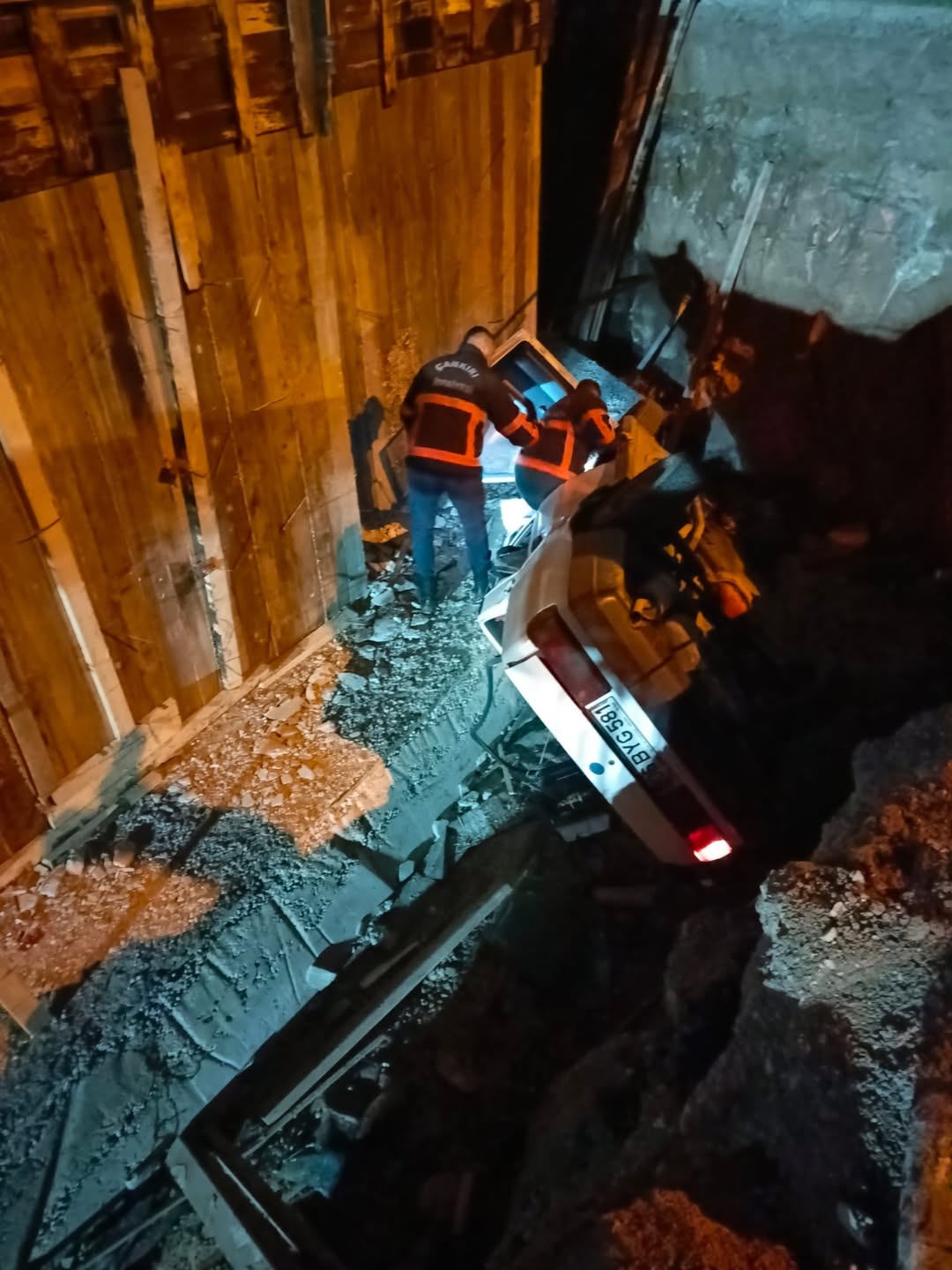 İnşaat sahasına düşen otomobil, yapılan çalışmaların ardından bulunduğu yerden çıkarıldı. Polis ekipleri, kazaya karışan araçtaki kişilerin kimliklerinin tespit edilmesi ve kazanın oluş nedeninin belirlenmesi için çalışma başlattı. Olayla ilgili soruşturmanın sürdüğü bildirildi.