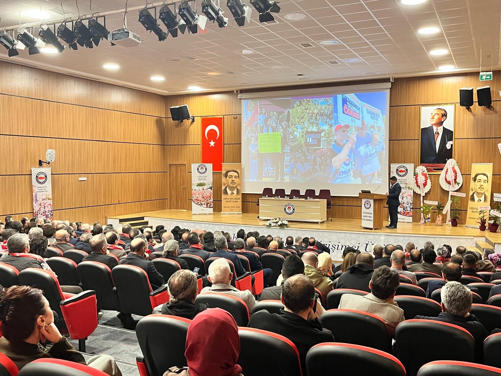 Ahmet Yesevi Konferans Salonu’nda düzenlenen genel kurula, sendika yöneticilerinin yanı sıra akademisyenler, sivil toplum temsilcileri ve çok sayıda davetli katıldı. Program, saygı duruşu ve İstiklal Marşı ile başladı. Divan Başkanlığına Eğitim-Bir-Sen Genel Başkan Yardımcısı Mesut Öner seçilirken, üyeliklere İrfan Bilici, Selami İskender, Turgut Ünal ve Kasım Karatekin getirildi.