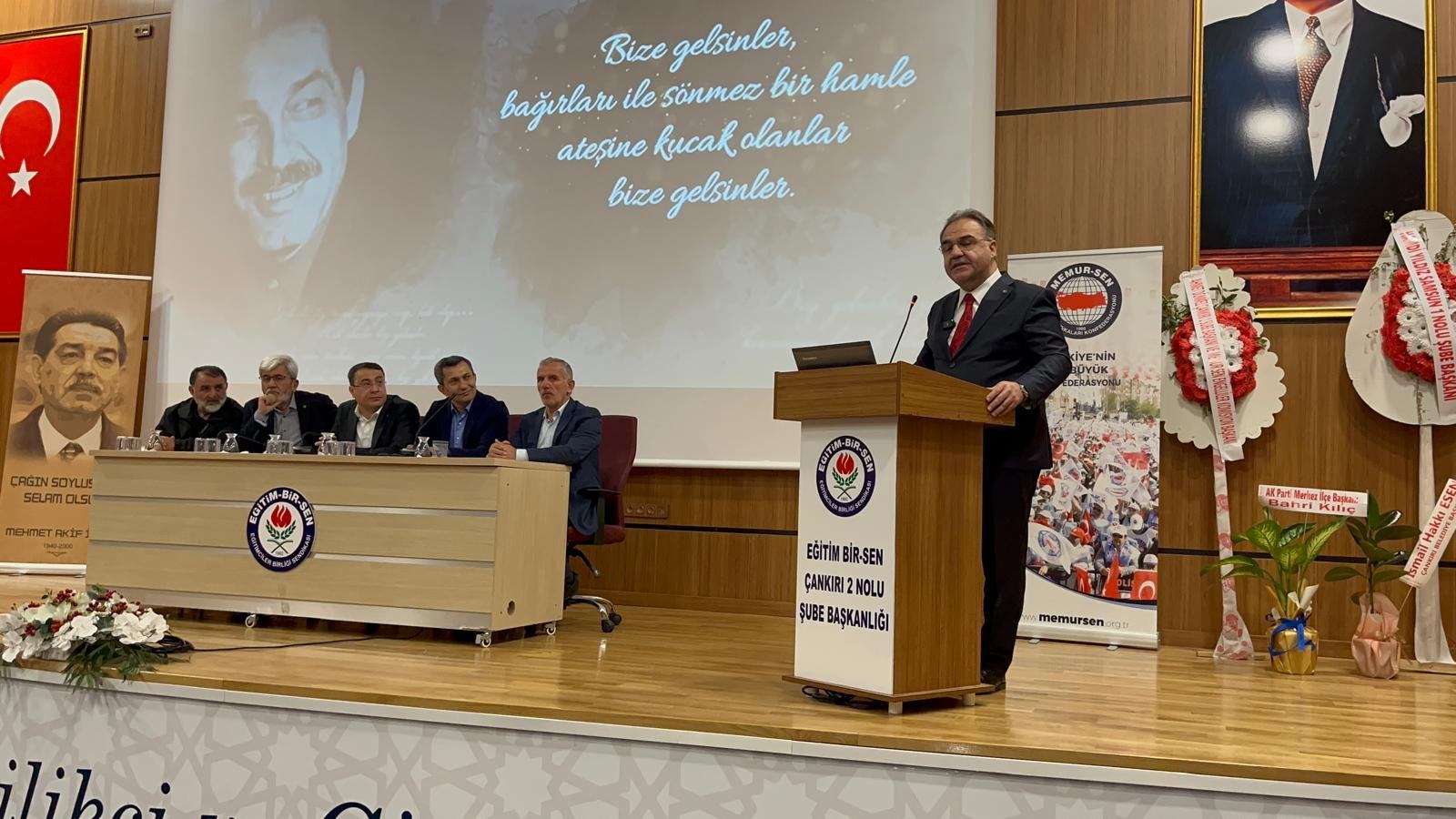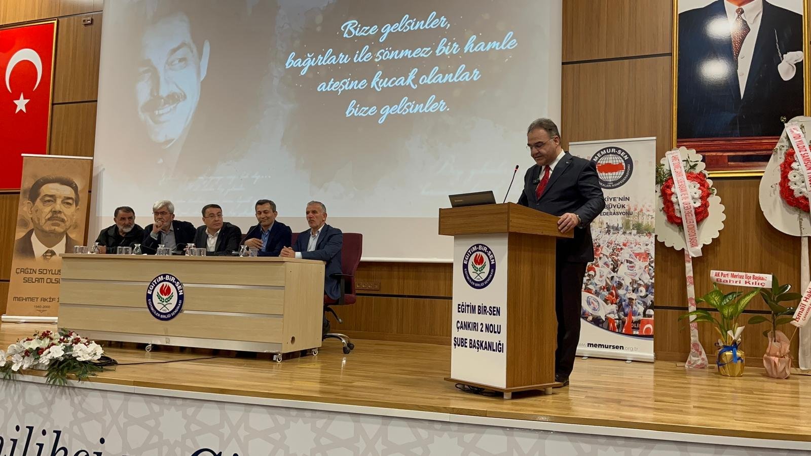 Memur-Sen ve Eğitim-Bir-Sen Genel Başkanı Ali Yalçın ise konuşmasında sendikal örgütlenmenin önemine değinerek, eğitim çalışanlarının ekonomik, sosyal ve özlük haklarının geliştirilmesine yönelik çalışmaların devam ettiğini belirtti. Yalçın, sendikanın büyüyen yapısına dikkat çekerek Türkiye genelindeki teşkilatlanma çalışmalarının sürdüğünü ifade etti.