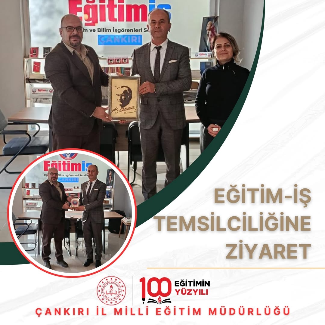Çankırı İl Millî Eğitim Müdürü Muammer Öztürk, Eğitim-İş Sendikası Temsilcisi Murat Şamasas ve sendika yönetimini ziyaret ederek kentte yürütülen eğitim faaliyetlerine ilişkin kapsamlı bir görüşme gerçekleştirdi. Eğitimde birlik, iletişim ve koordinasyonun artırılması amacıyla yapılan ziyaret, kentteki eğitim gündeminin değerlendirilmesi açısından önem taşıdı.