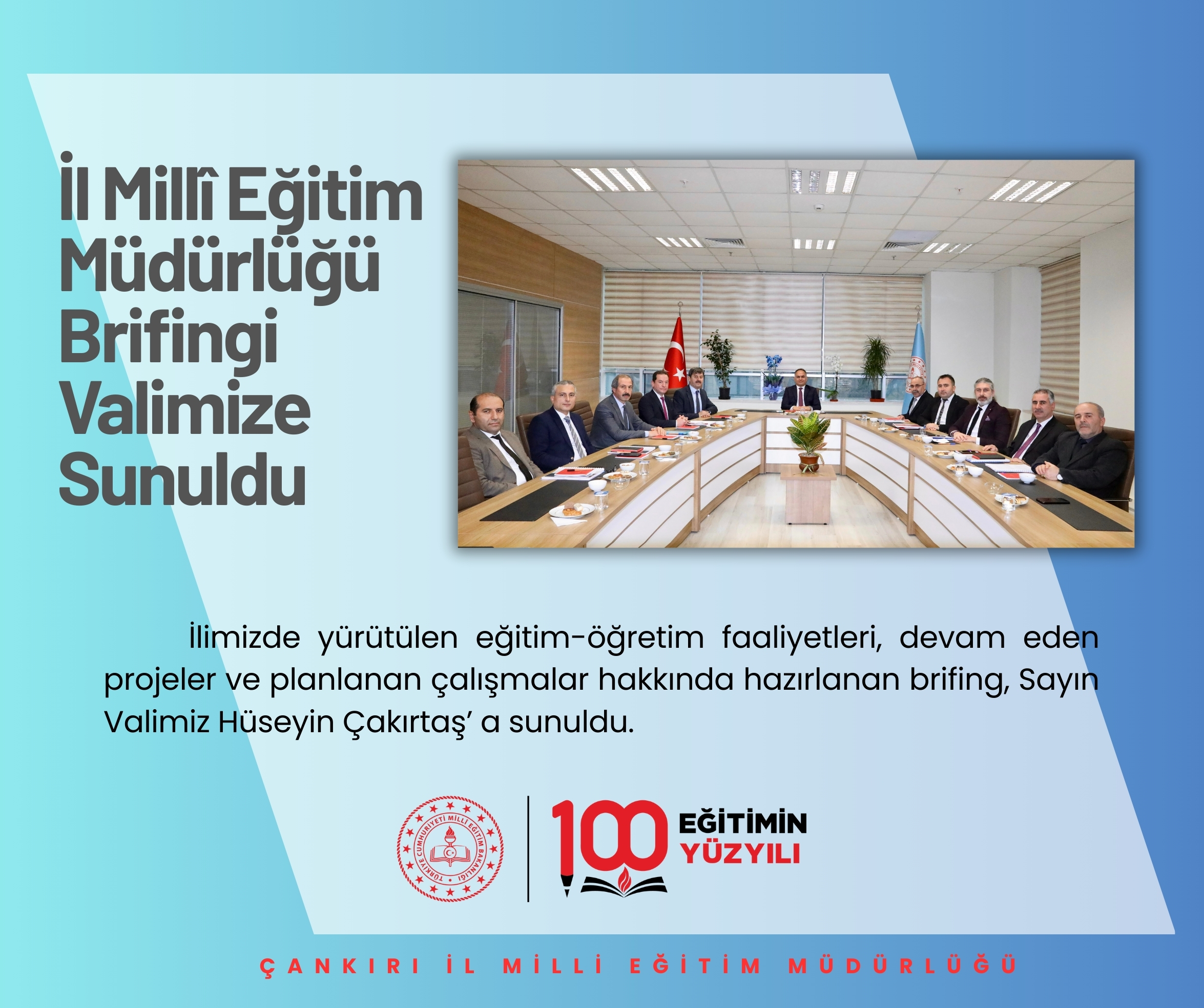 Ziyaret kapsamında düzenlenen toplantıda, Çankırı İl Millî Eğitim Müdürü Ayhan Işık tarafından yapılan sunumda; il genelindeki okulların mevcut durumu, eğitim altyapısı, devam eden projeler, planlanan yatırımlar ve eğitimde kaliteyi artırmaya yönelik çalışmalar detaylı şekilde ele alındı. Brifingte ayrıca, eğitim hizmetlerinin etkinliğinin artırılması, öğrenci başarısının yükseltilmesi ve kurumsal kapasitenin güçlendirilmesine yönelik hedefler de değerlendirildi.