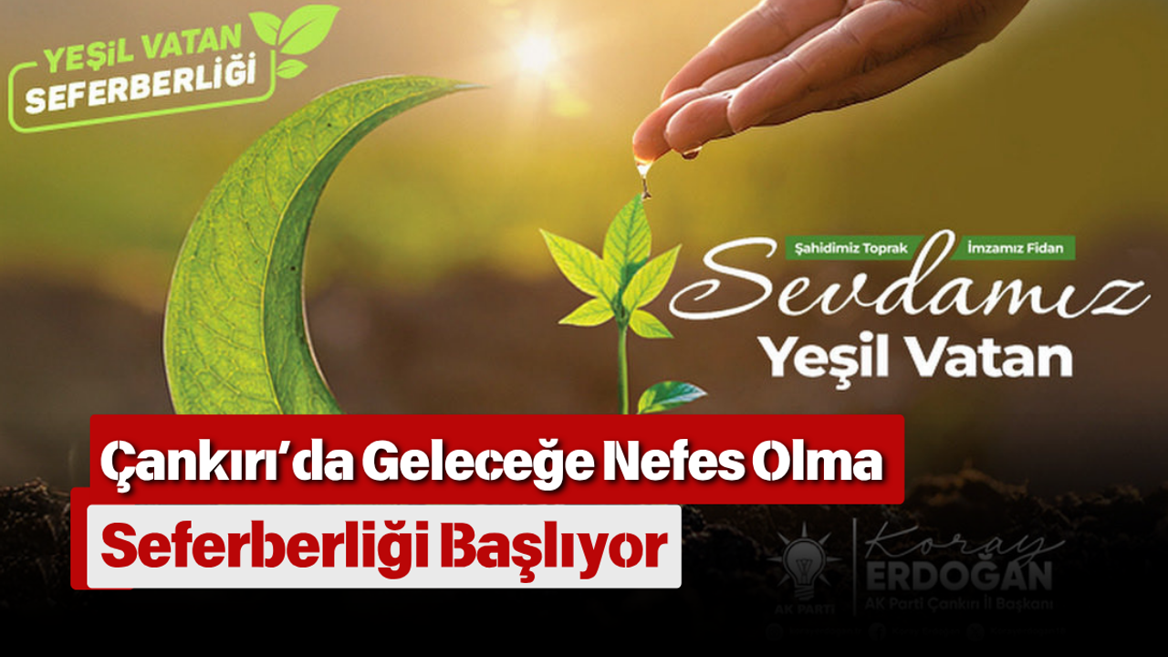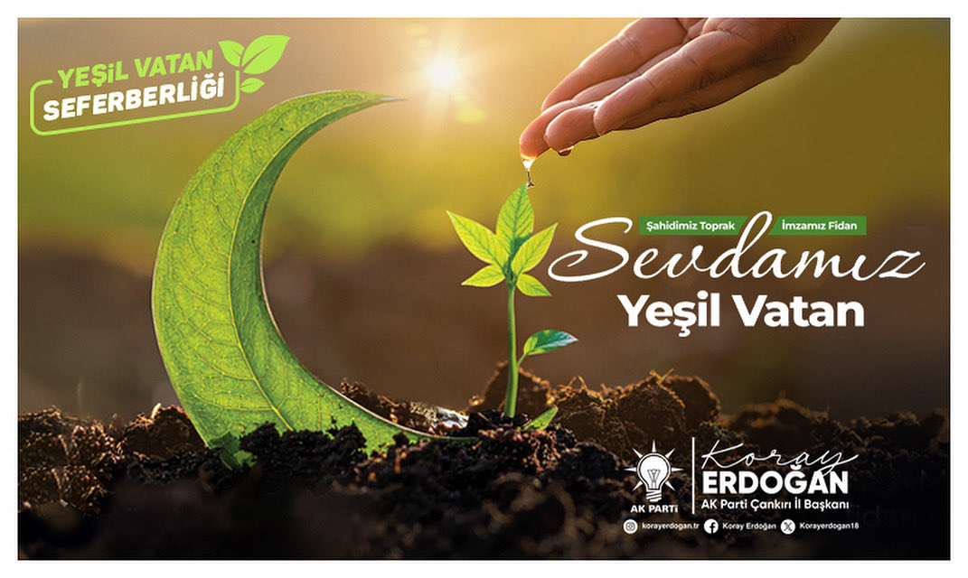 AK Parti Çankırı İl Başkanı Koray Erdoğan, Cumhurbaşkanı Recep Tayyip Erdoğan öncülüğünde başlatılan Yeşil Vatan Seferberliği kapsamında, bu yıl da milyonlarca fidanın toprakla buluşturulacağını duyurdu.