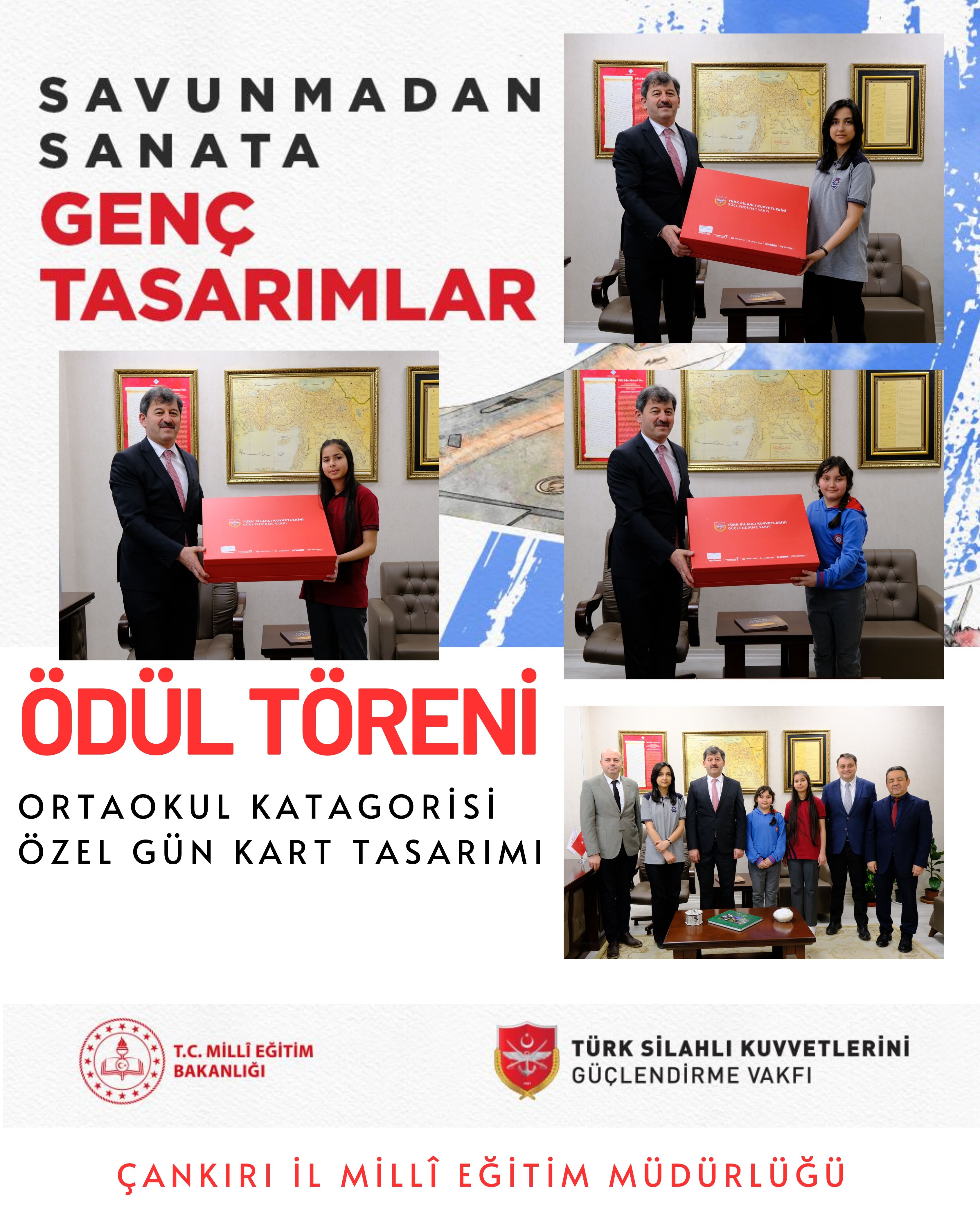 Bakanlık ile Türk Silahlı Kuvvetlerini Güçlendirme Vakfı iş birliğinde yürütülen “Savunmadan Sanata: Genç Yetenekler Özel Gün Kartı Yarışması” kapsamında düzenlenen ödül töreni Çankırı’da gerçekleştirildi.