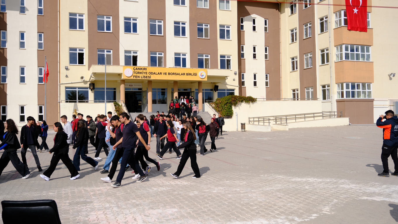 Çankırı’da öğrencilerin afet bilincini artırmak ve acil durumlara hazırlık seviyesini test etmek amacıyla kapsamlı bir deprem tatbikatı gerçekleştirildi. Çankırı İl Milli Eğitim Müdürlüğü İş Sağlığı ve Güvenliği ile Sivil Savunma Birimi tarafından organize edilen tatbikat, Afet Risklerinin Azaltılması Günü dolayısıyla TOBB Fen Lisesi bahçesinde yapıldı. Etkinliğe İl Milli Eğitim Müdürü Muammer Öztürk, AFAD İl Müdürü Mehmet Tahir Göktaş, İl Milli Eğitim Müdür Yardımcısı Arif Kırkpınar, okul yöneticileri, öğretmenler ve öğrenciler katıldı.