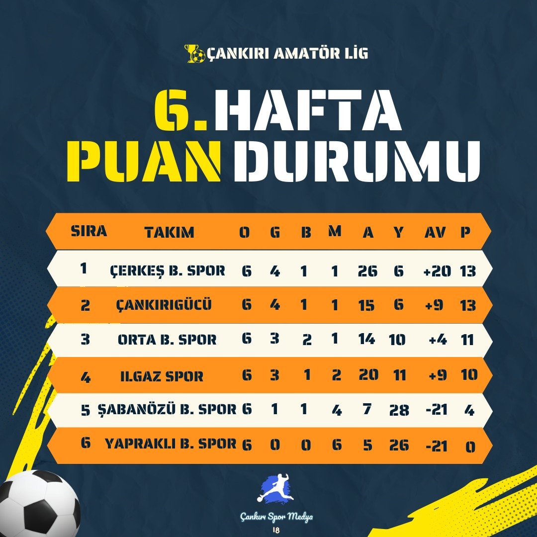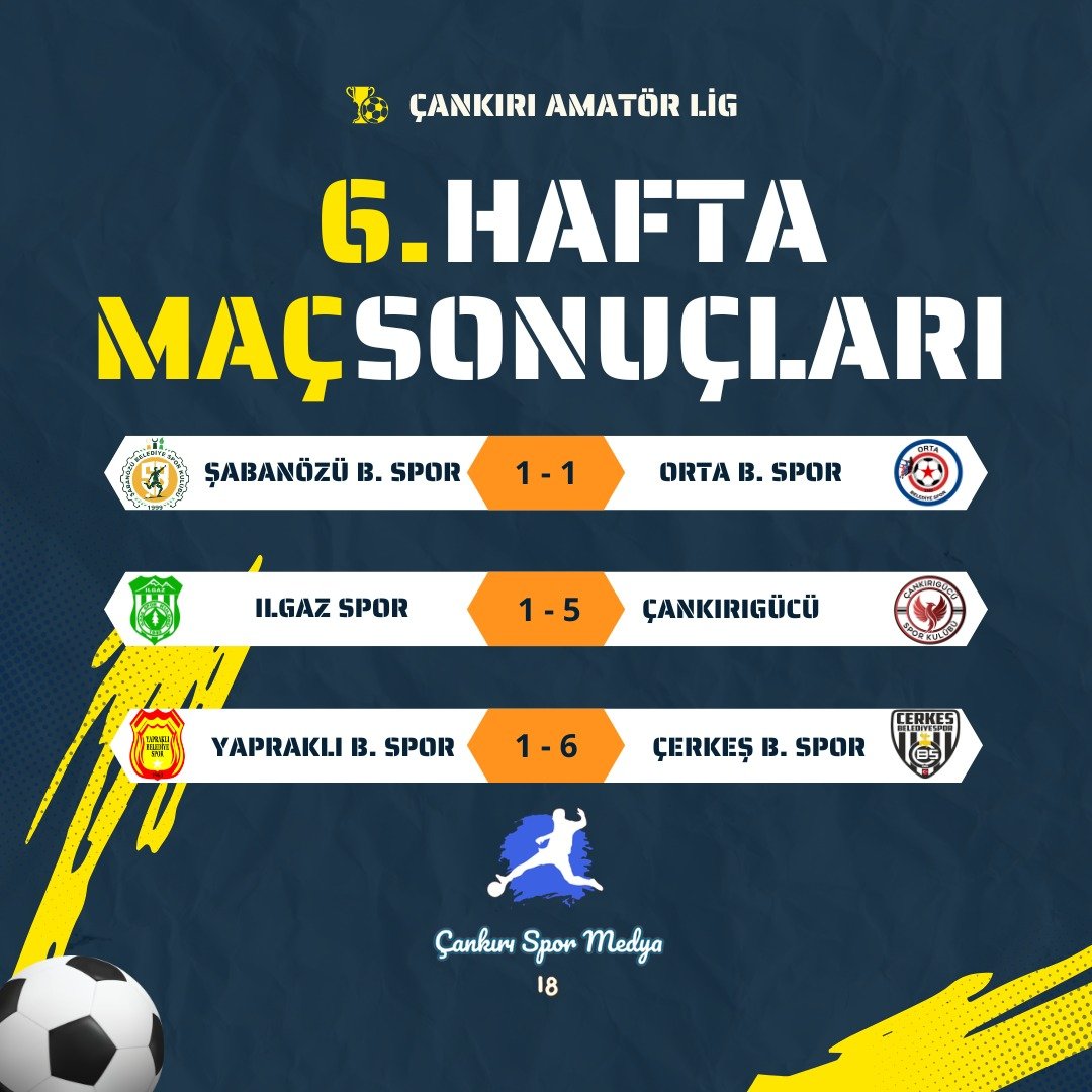 Çankırı Amatör Lig’de 6. hafta maçları tamamlandı. Haftaya damga vuran karşılaşmalarda bol gollü skorlar öne çıkarken, zirve yarışında dengeler değişmedi.
