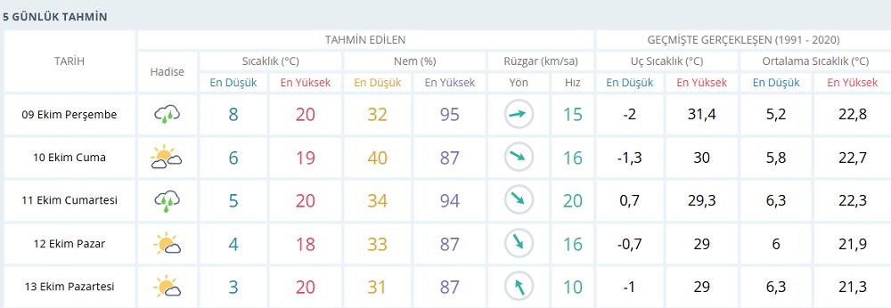 12 ve 13 Ekim günlerinde ise havanın yavaş yavaş açması bekleniyor.