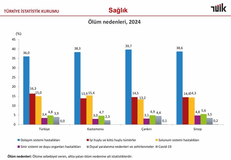 Mart ayı itibarıyla kamuoyuna yansıyan ve Türkiye İstatistik Kurumu (TÜİK) verilerine dayanan "Ölüm Nedenleri" sunumu, Çankırı’nın sağlık haritasını net bir şekilde ortaya koydu. Bölge illerini kapsayan karşılaştırmalı istatistiklerde Çankırı, özellikle belirli bir hastalık grubundaki yüksek oranıyla dikkatleri üzerine çekti. İncelenen veriler, kentteki önleyici sağlık hizmetlerinin hangi noktaya odaklanması gerektiğini işaret ediyor.