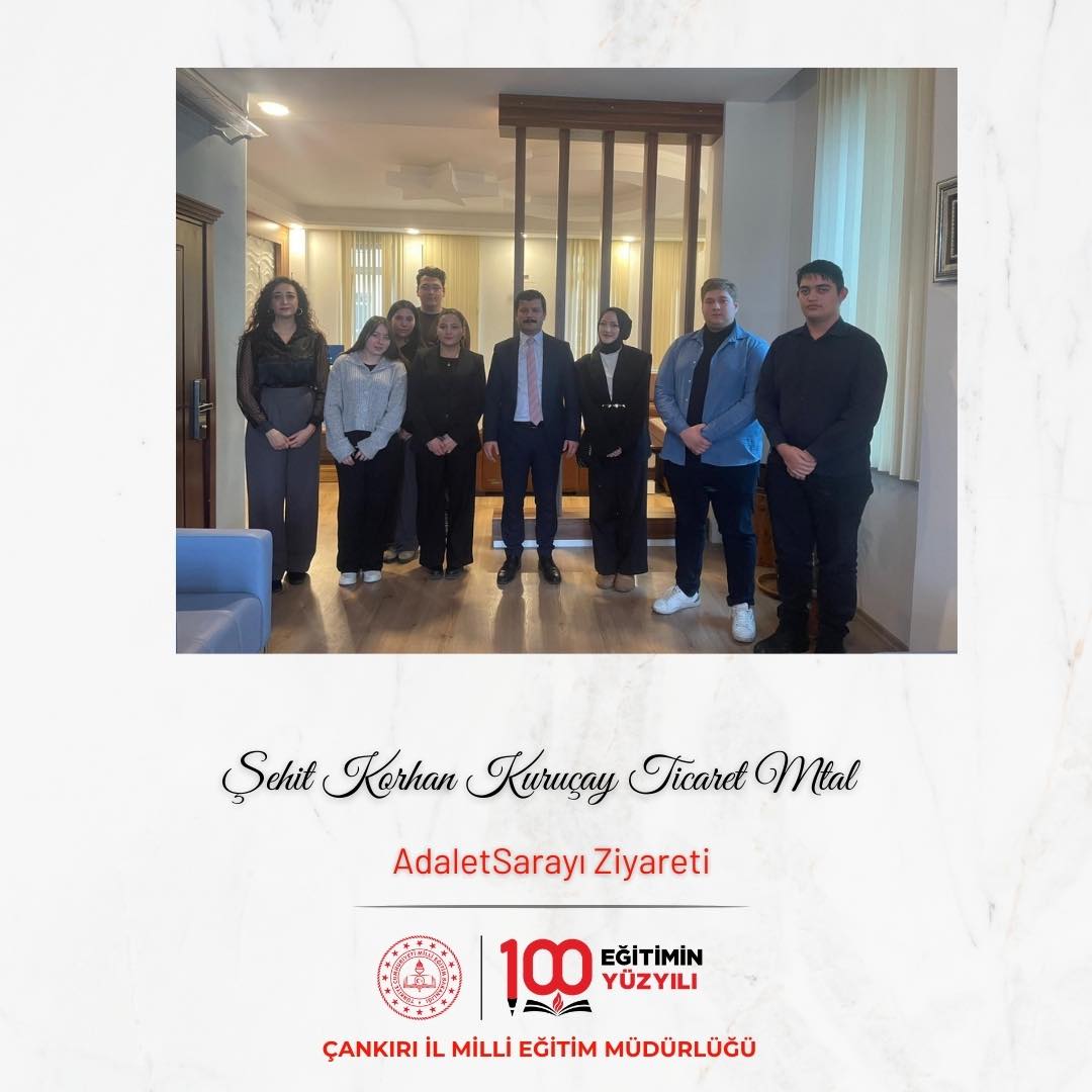 Çankırı’da adalet alanında eğitim gören öğrenciler, mesleki gelişimlerine katkı sağlayacak anlamlı bir ziyarete imza attı. Çankırı Şehit Korhan Kuruçay Ticaret Mesleki ve Teknik Anadolu Lisesi Adalet Alanı 12. sınıf öğrencileri, mesleki rehberlik ve hukuk bilincini geliştirmek amacıyla Çankırı Cumhuriyet Başsavcısı Huzeyfe Yücedağ’ı makamında ziyaret etti.