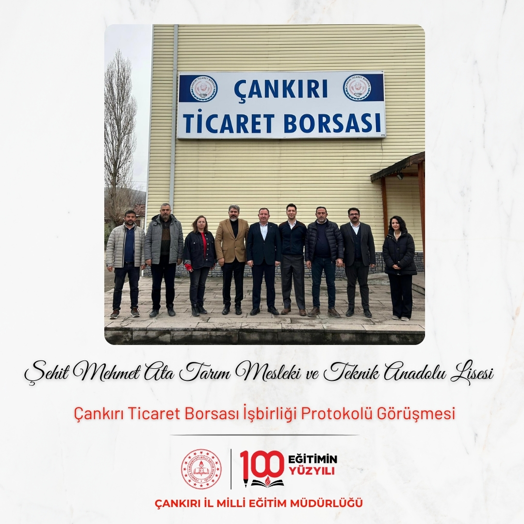 Milli Eğitim Bakanlığı Meslekî ve Teknik Eğitim Genel Müdürlüğü ile Türkiye Odalar ve Borsalar Birliği (TOBB) arasında 23 Ekim 2025 tarihinde imzalanan iş birliği protokolü, Çankırı’da somut adımlarla hayata geçirilmeye başlandı. Bu kapsamda Çankırı TOBB ile Şehit Mehmet Ata Tarım Mesleki ve Teknik Anadolu Lisesi arasında ilk değerlendirme toplantısı gerçekleştirildi.