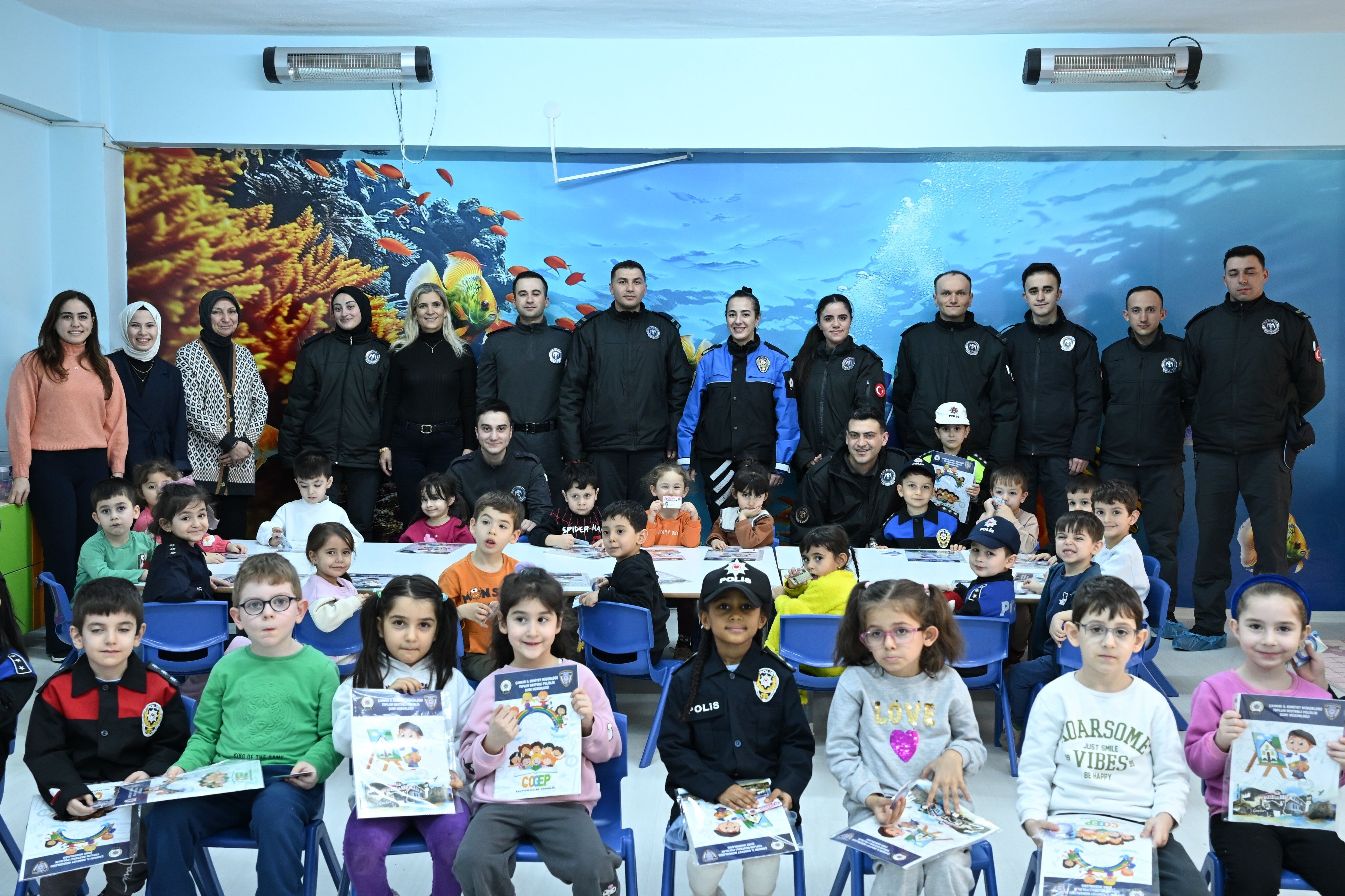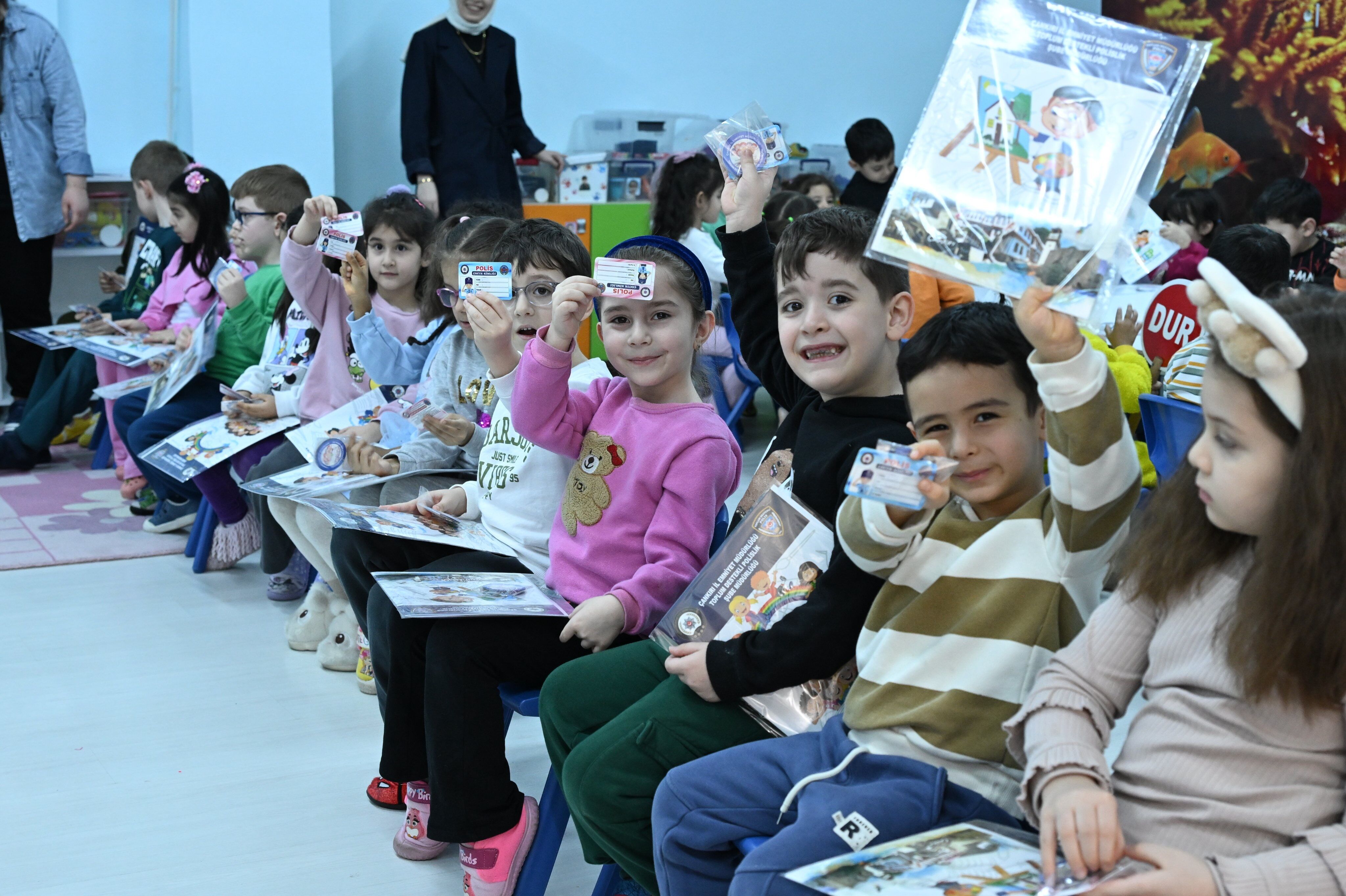 Etkinlikte minik öğrencilere çocuk polis kimlik kartları, boyama kitapları ve anahtarlıklar hediye edildi. Polisler, çocuklara güvenli davranış alışkanlıklarını eğlenceli ve öğretici bir şekilde aktarmayı amaçladı.