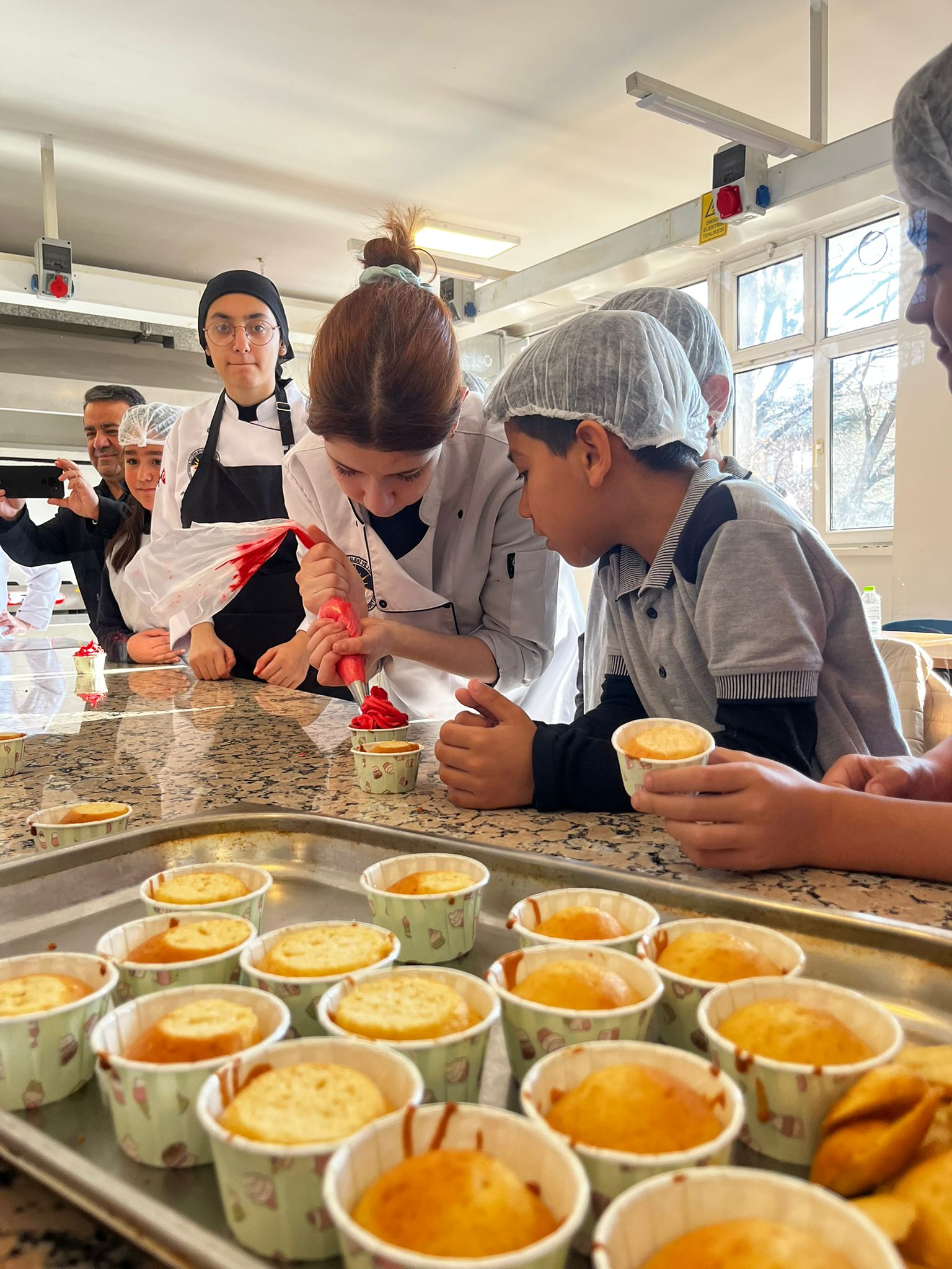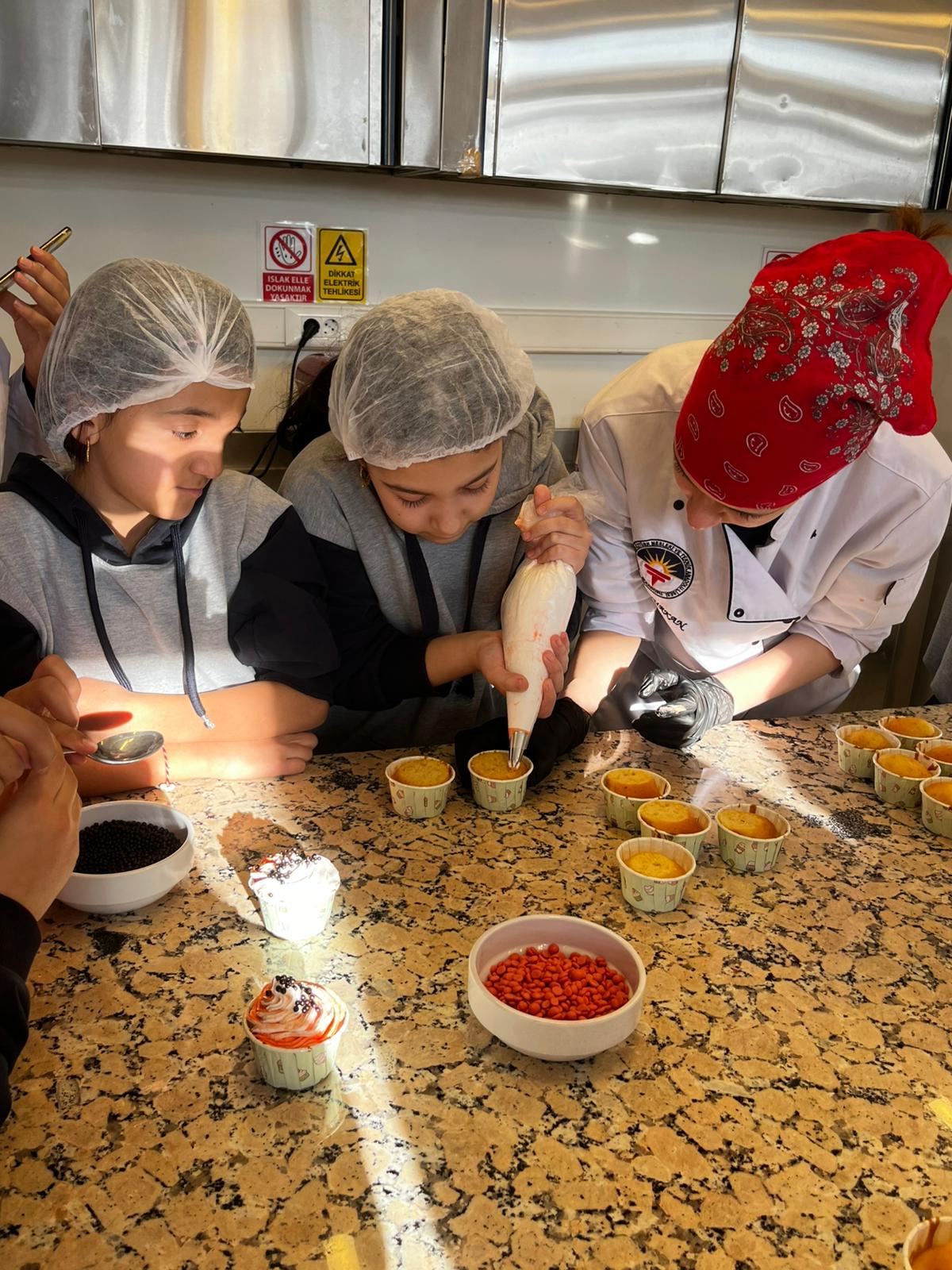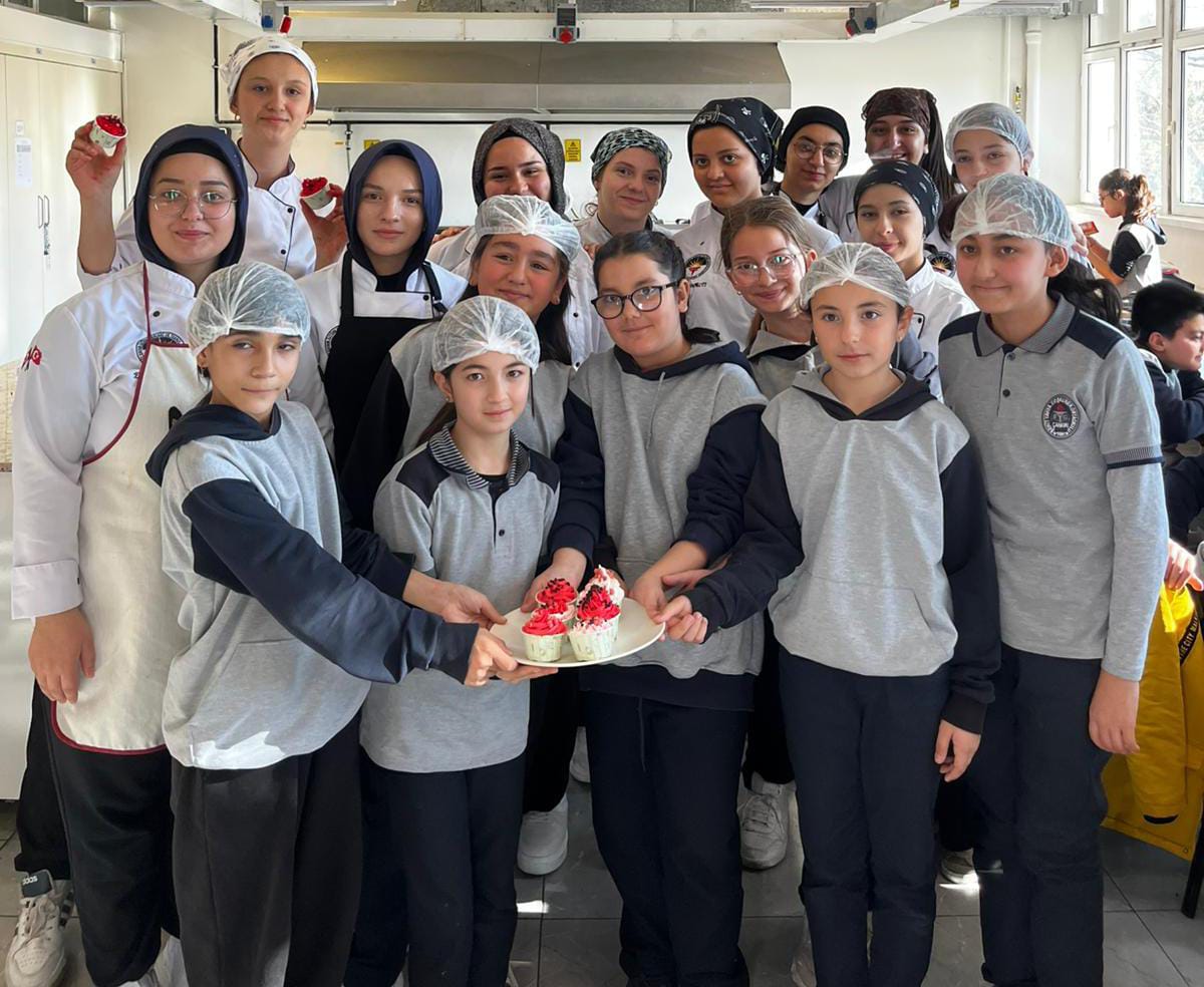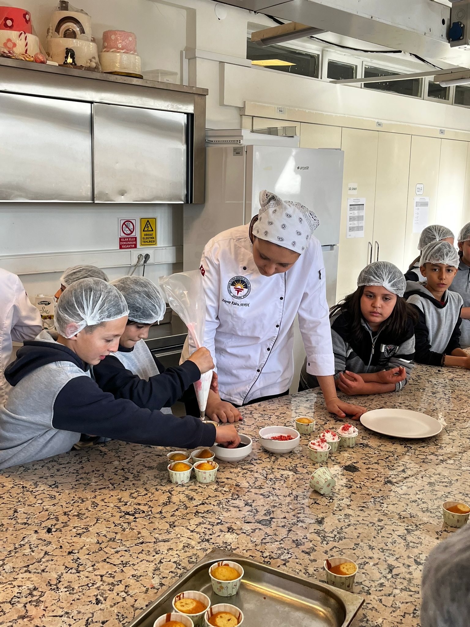 Etkinliklerde, Çocuk Gelişimi ve Eğitimi ile Yiyecek ve İçecek Hizmetleri alanı öğrencileri, misafir öğrencilerle birlikte çeşitli atölye çalışmaları gerçekleştirdi. Program kapsamında öğrenciler, alçıdan hazırlanan kalemlikleri boyayarak el becerilerini geliştirdi. Bunun yanı sıra, cupcake yapımı ve süsleme etkinlikleriyle hem eğlenceli hem de öğretici anlar yaşandı.