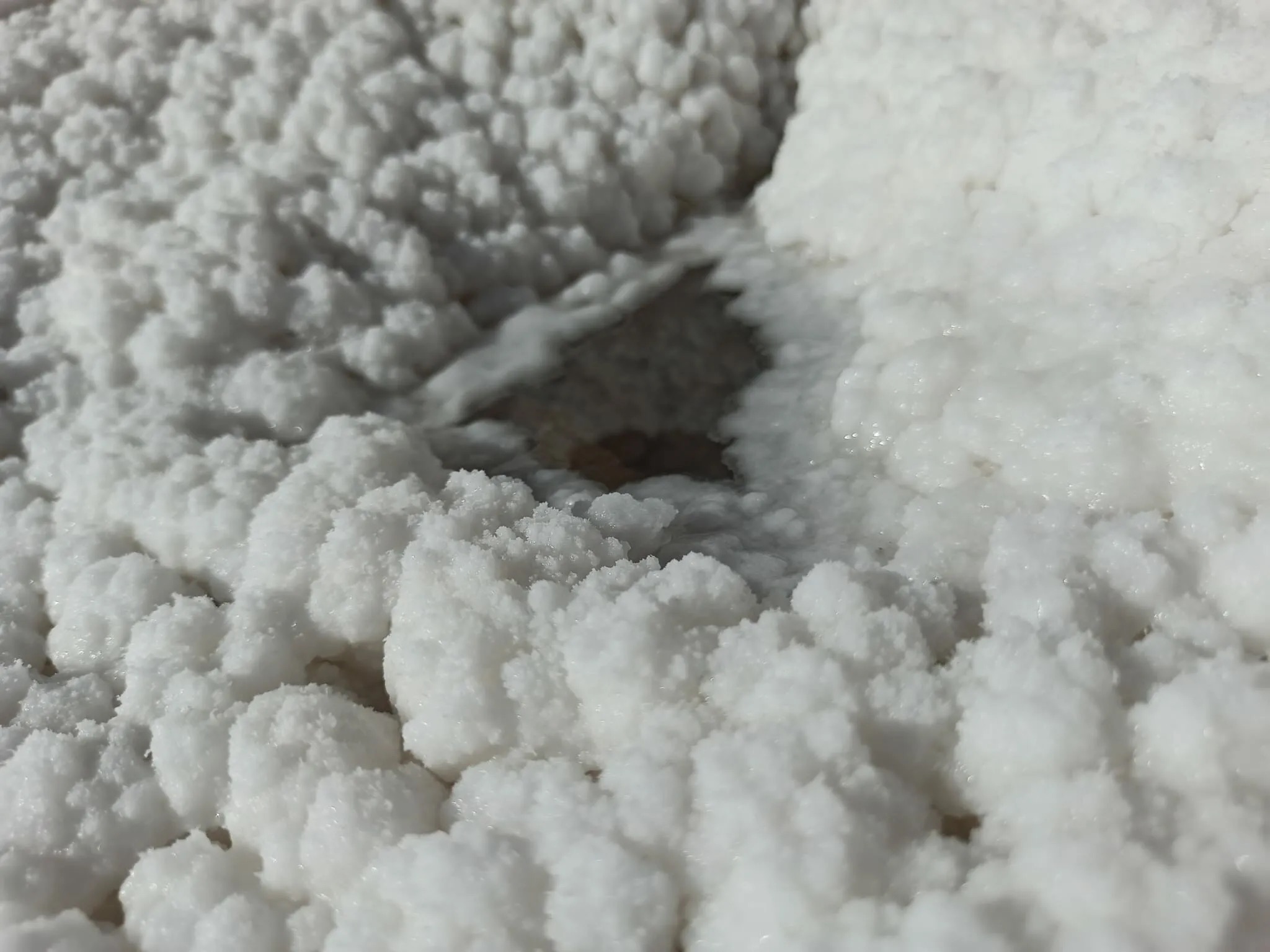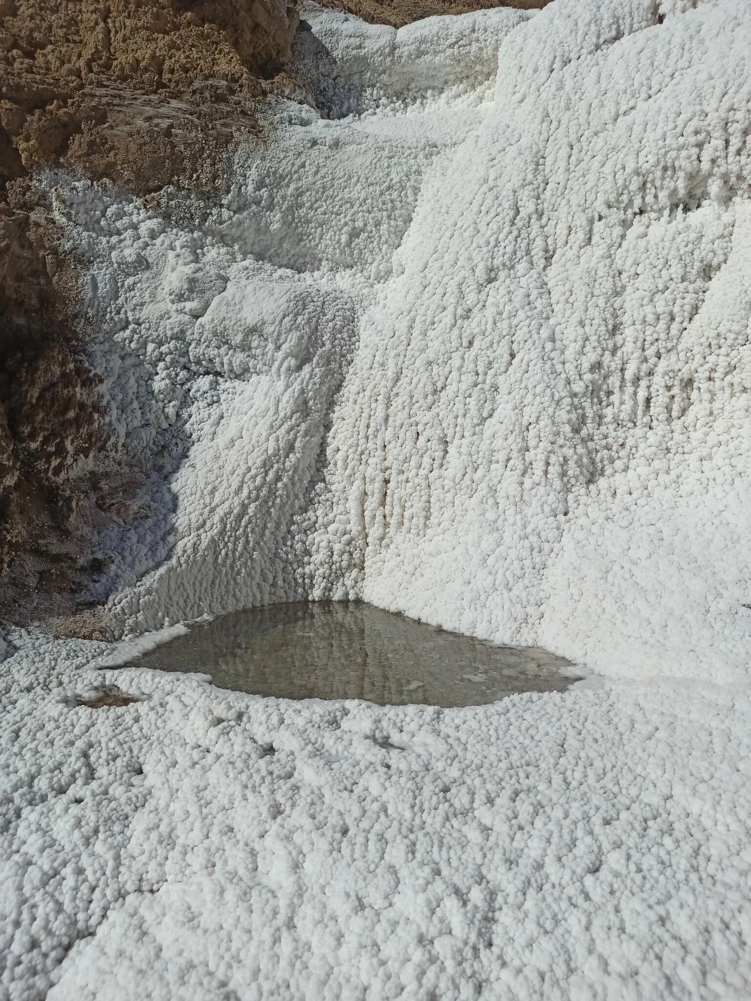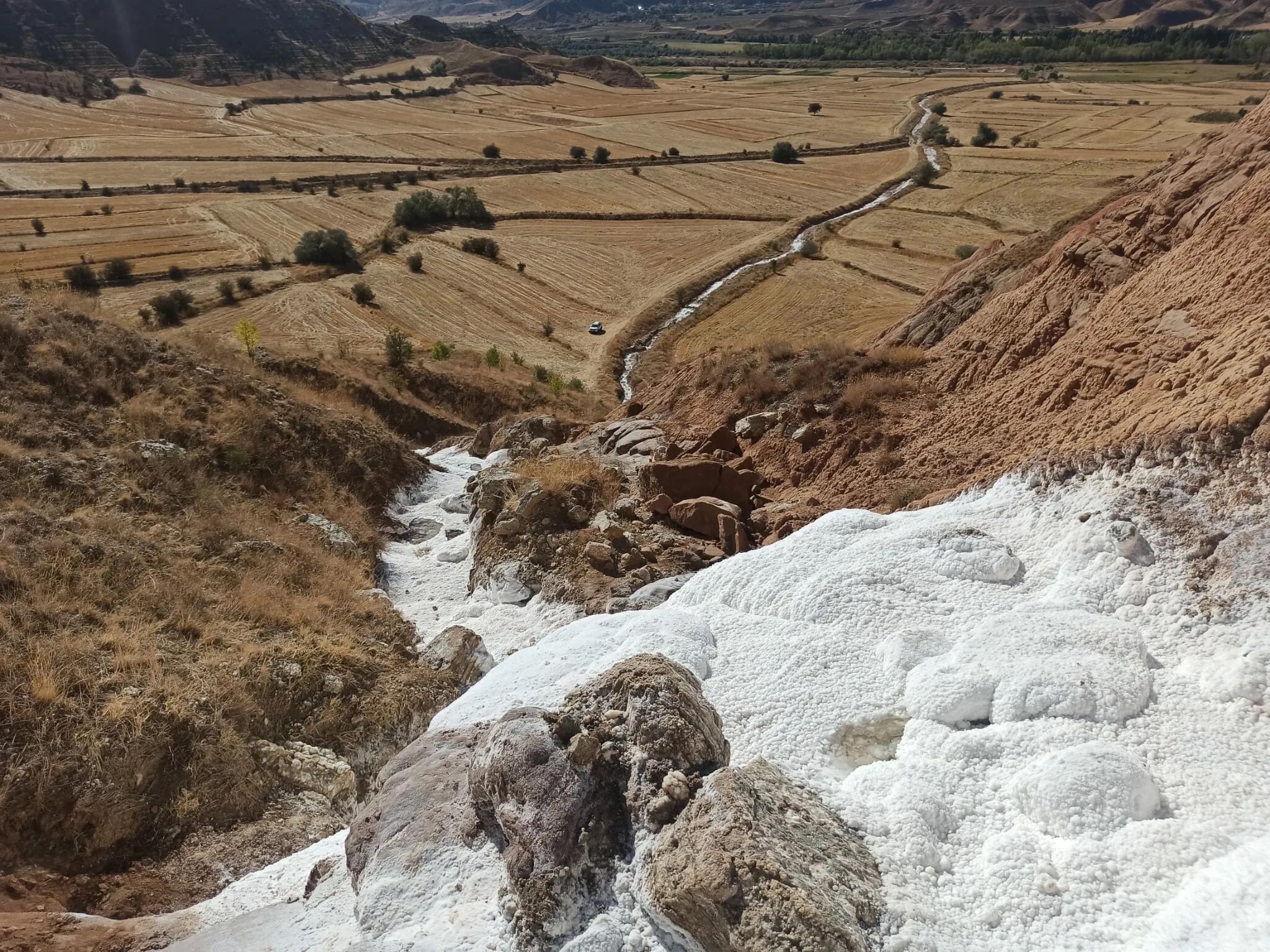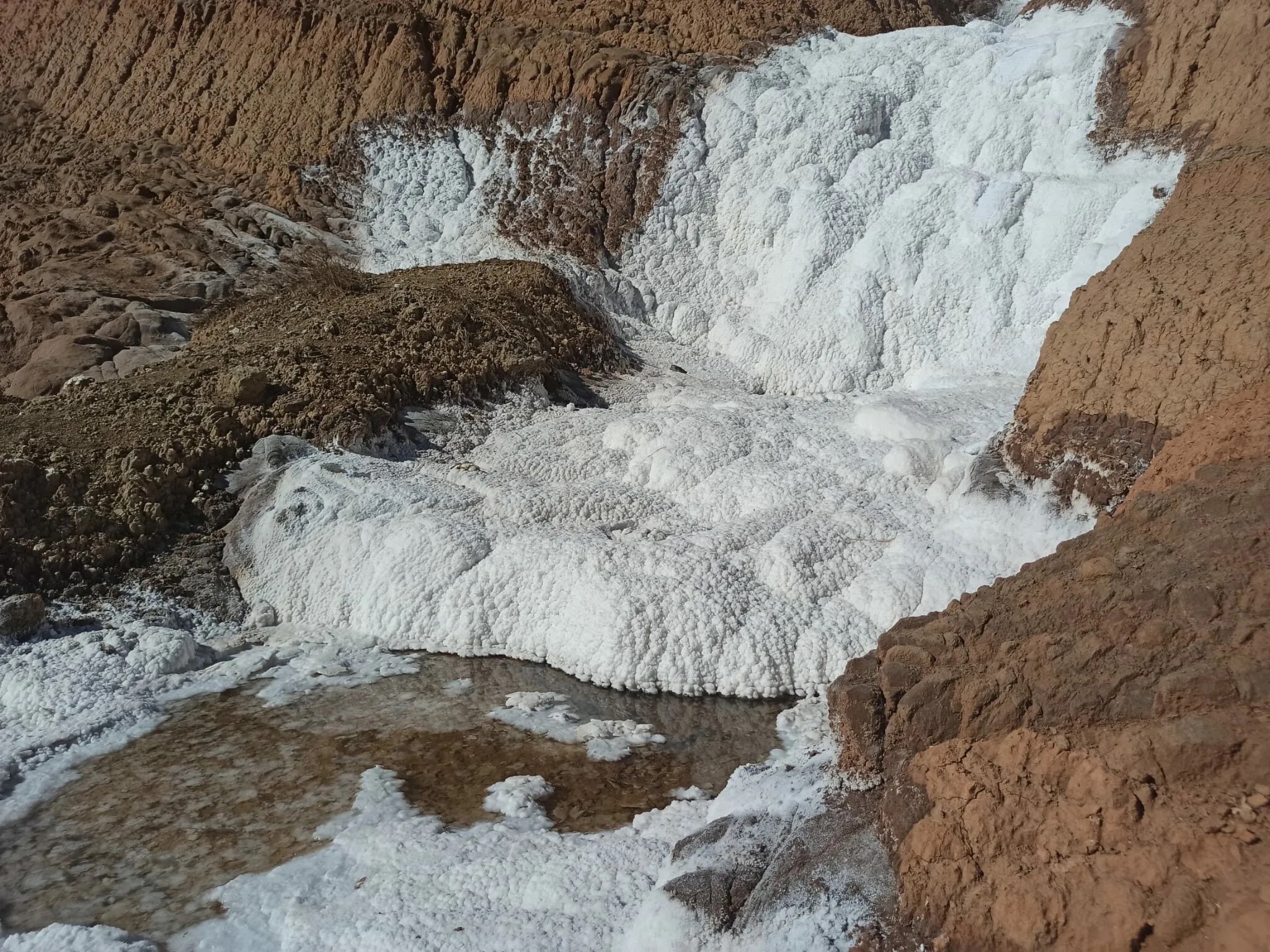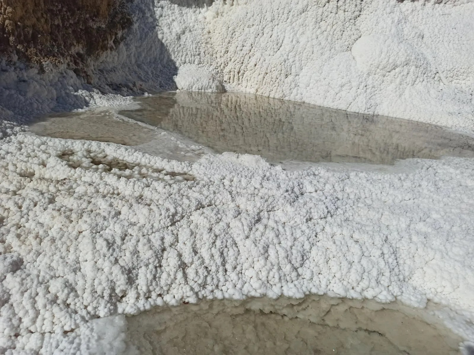 Tepelerden süzülen tuzlu sular, dere yatakları boyunca ilerleyerek zamanla bembeyaz tuz tabakaları oluşturuyor. Güneş ışığıyla birlikte parlayan bu doğal oluşumlar, adeta bir açık hava sanat eserini andırıyor. Kristalleşen tuzlar, dere yatağı boyunca doğal bir heykel gibi şekillenerek kartpostallık görüntüler ortaya çıkarıyor.