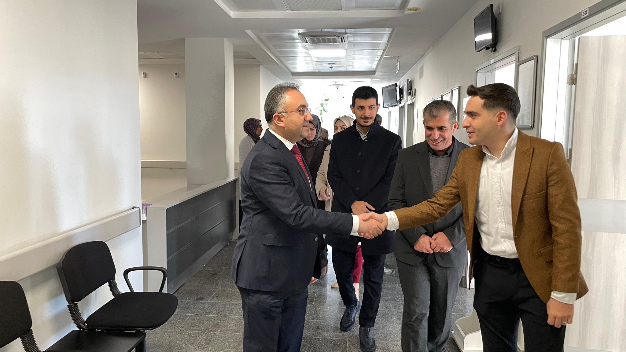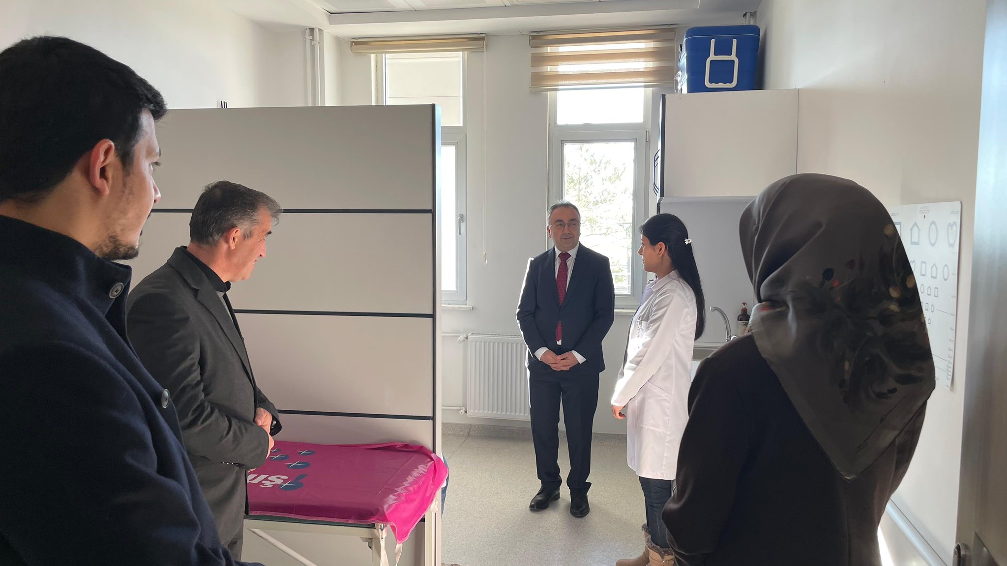 ASKOM toplantısının ardından İl Sağlık Müdürü Dr. Öğr. Üyesi Yunus Emre Bulut, Orta Devlet Hastanesi’ni ziyaret etti. Ziyaret kapsamında servislerde incelemelerde bulunan Bulut, sağlık çalışanları ve hastalarla bir araya gelerek talep ve görüşleri dinledi.