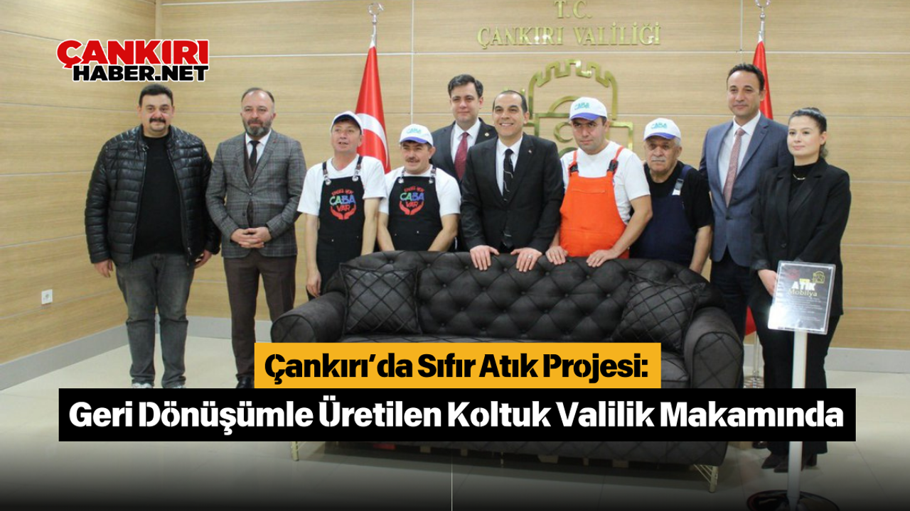 Çankırı Aile ve Sosyal Hizmetler İl Müdürü Abdulhaluk Longa, Çankırı Bakım Rehabilitasyon ve Aile Danışma Merkezi sakinleriyle birlikte, geri dönüştürülebilir malzemelerden üretilen özel bir koltuğu Çankırı Valisi Fırat Taşolar’a makamında takdim etti.