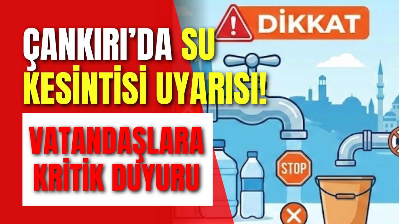 Yetkililerden yapılan açıklamaya göre, 06 Mart 2026 Cuma günü saat 07.00 ile 17.00 arasında Çankırı Devlet Hastanesi ve sonrasında bulunan bölgelere su verilemeyecek. Arızanın giderilmesi için ekiplerin çalışma yürüteceği belirtilirken, kesintinin yaklaşık 10 saat sürmesinin beklendiği ifade edildi.