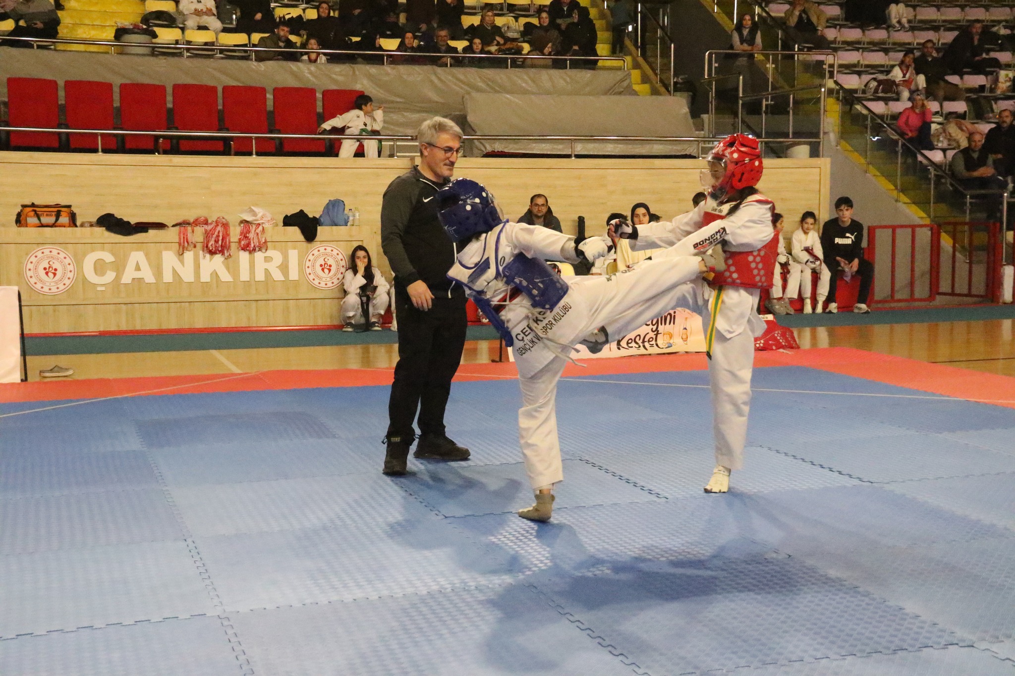 ÖZEL HABER/Çankırı’da gerçekleştirilen Okul Sporları Taekwondo İl Birinciliği Müsabakaları, minikler, küçükler, yıldızlar ve gençler kategorilerinde kız ve erkek sporcuların kıyasıya mücadelesine sahne oldu. İl genelinden yoğun katılımın olduğu organizasyonda sporcular hem yeteneklerini sergiledi hem de centilmence rekabetin en güzel örneklerini ortaya koydu.