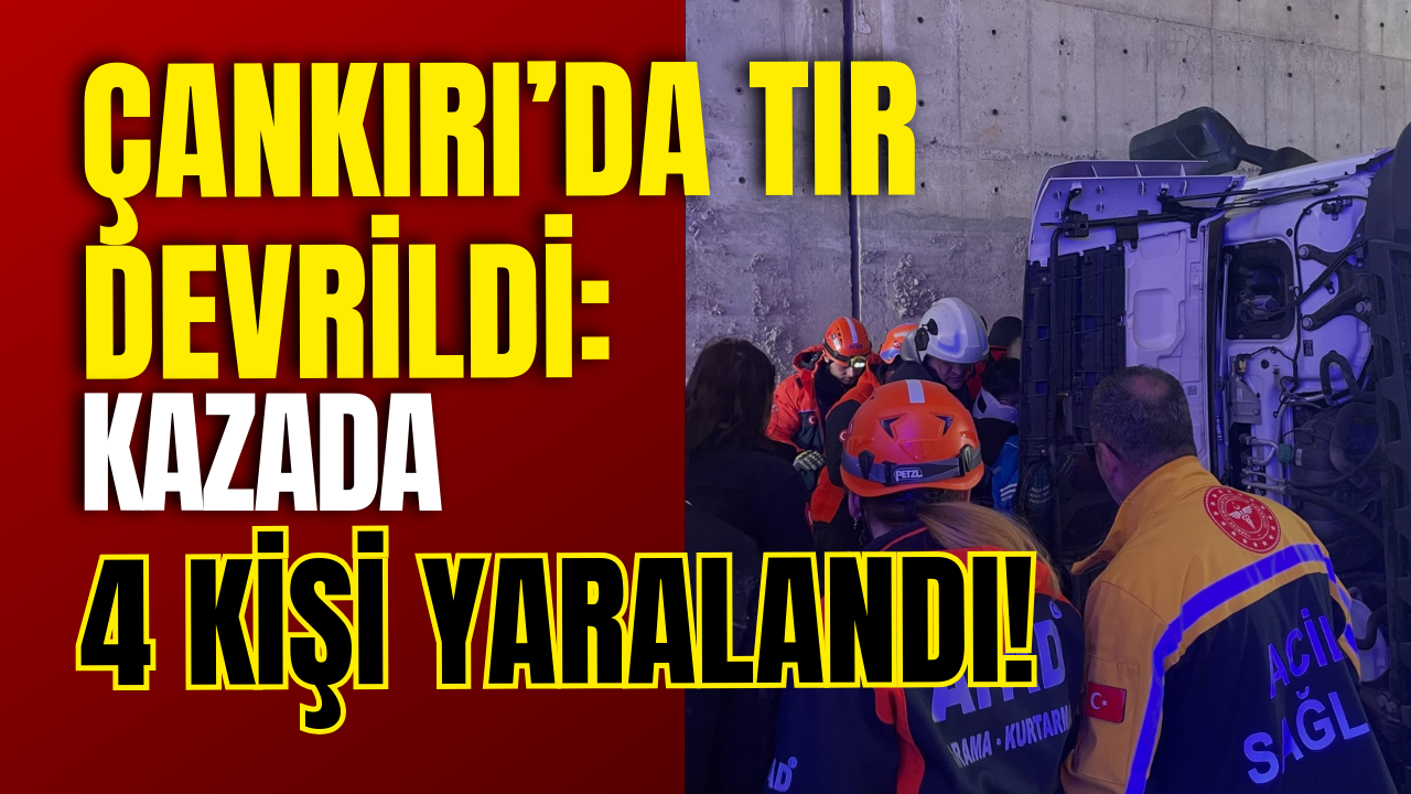 Çankırı’da meydana gelen trafik kazasında bir tırın devrilmesi sonucu 4 kişi yaralandı. Kaza, Merkez ilçeye bağlı Süleymanlı köyü mevkiinde gerçekleşti. Edinilen bilgilere göre Yerel Yönetimler Çevre Hizmetleri Birliği’ne ait 18 ACN 209 plakalı tır, sürücüsünün direksiyon hakimiyetini kaybetmesi sonucu kontrolden çıkarak devrildi.