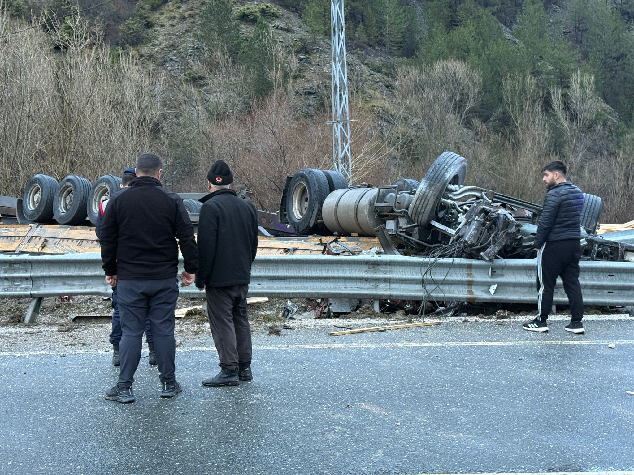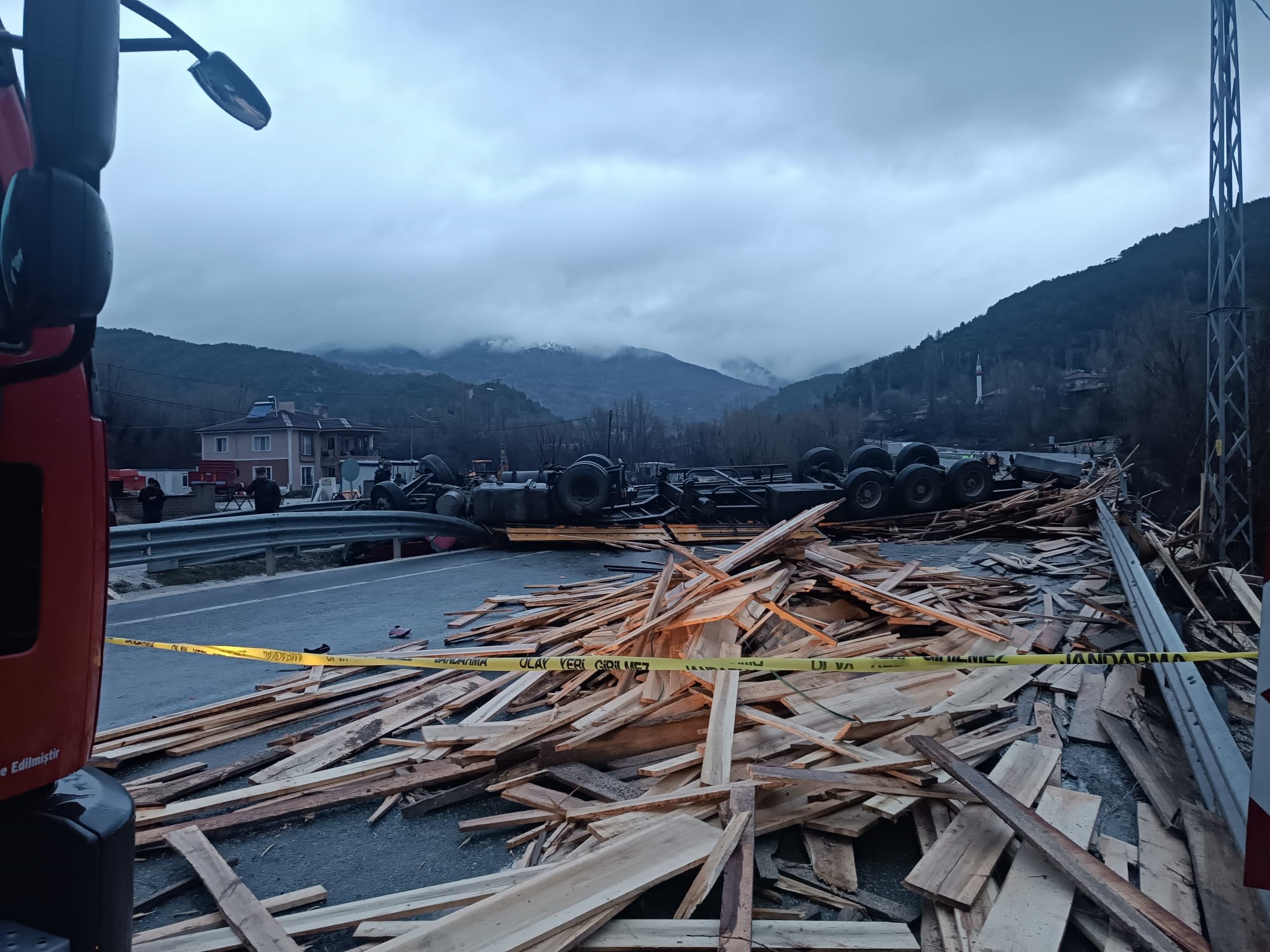 Edinilen bilgilere göre, İhsan Akman yönetimindeki tahta yüklü tır, sürücüsünün direksiyon hakimiyetini kaybetmesi sonucu kontrolden çıkarak devrildi. Kazanın etkisiyle tırın altında kalan sürücü ağır şekilde yaralandı.