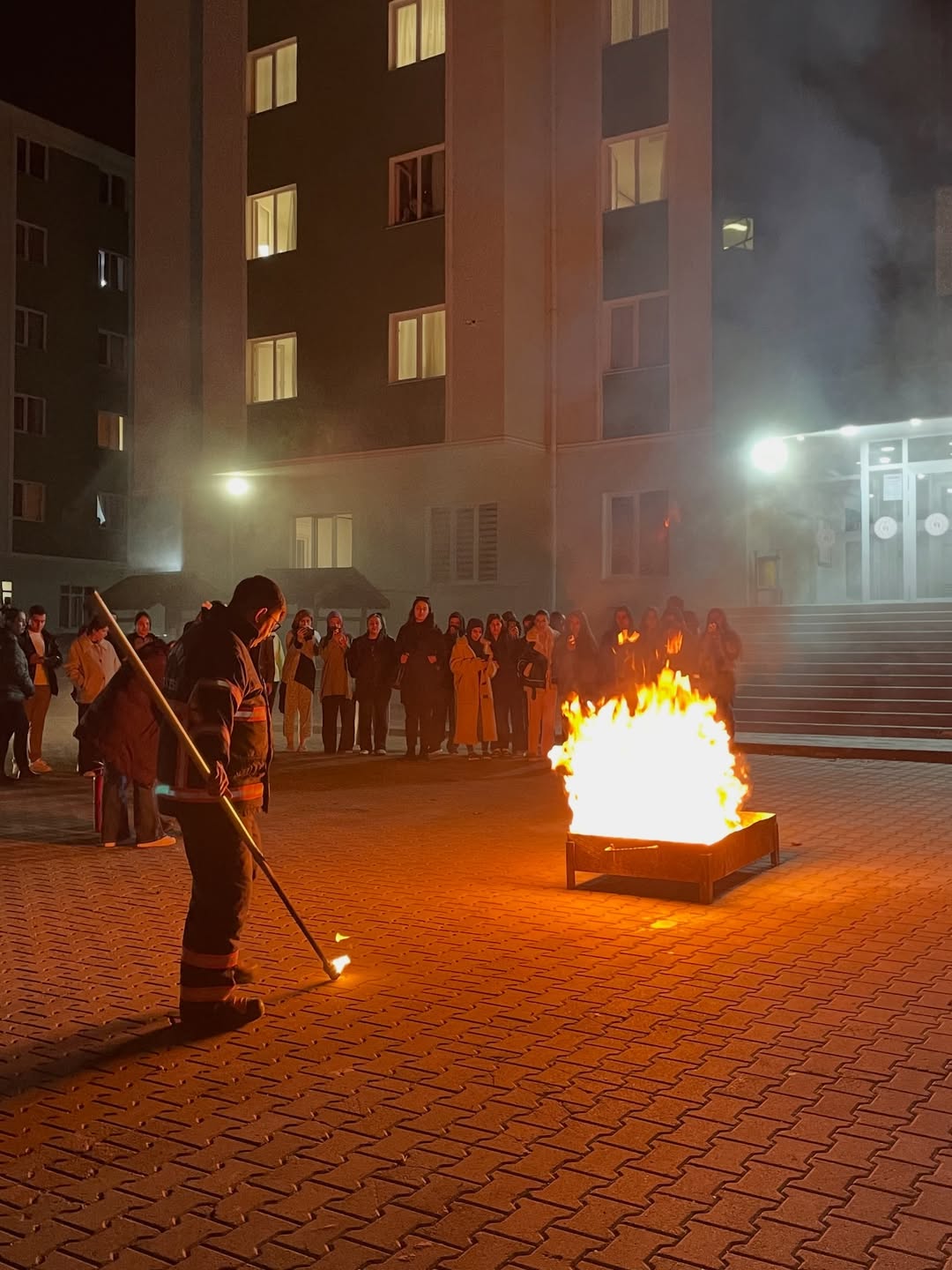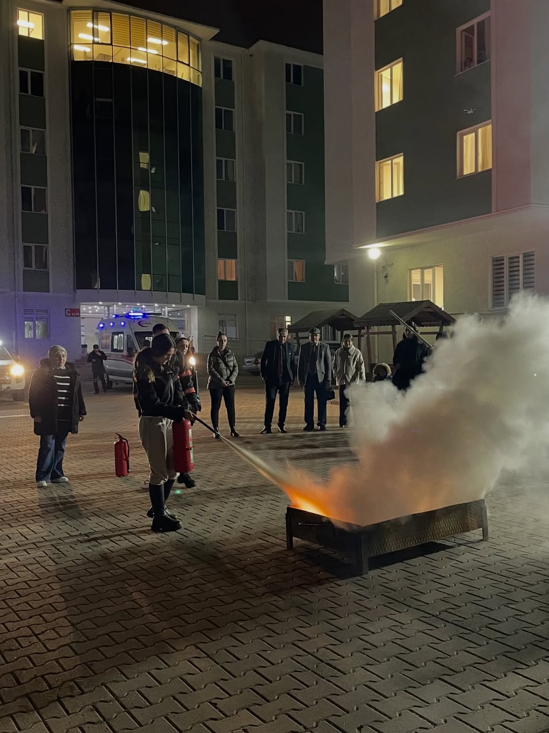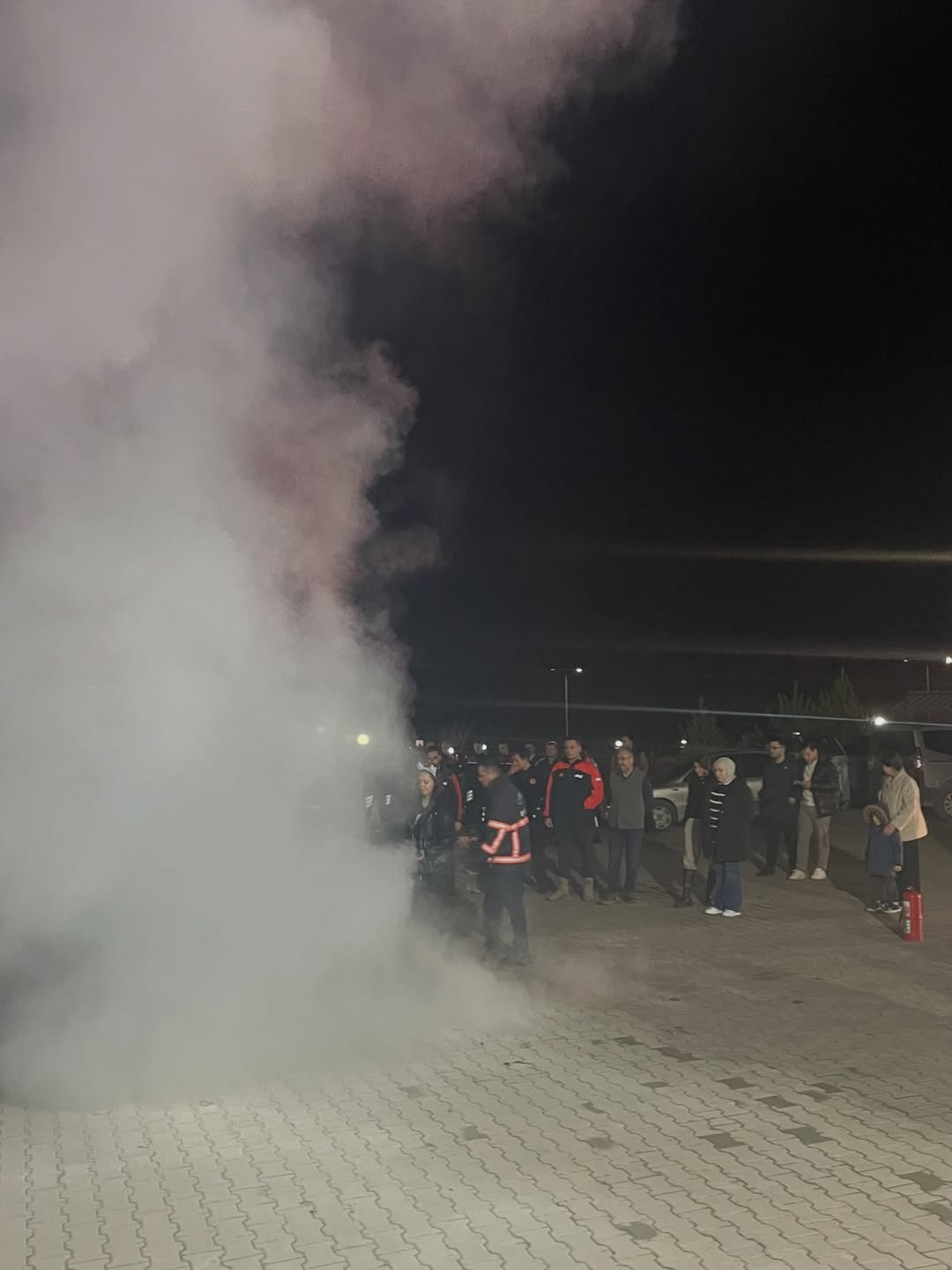 Senaryo gereği yurtta bir yangın alarmı verildi ve öğrencilerin tahliye süreci uygulamalı biçimde gerçekleştirildi. Ardından yaralı kurtarma çalışması canlandırıldı ve ekipler iş birliği içinde kısa sürede alandaki yaralıları güvenli bölgeye taşıdı. Programın son bölümünde ise yangın söndürme eğitimi verildi. İtfaiye ekipleri tarafından yangın söndürme cihazlarının kullanımı uygulamalı şekilde gösterilirken, öğrenciler de bizzat deneyimleme fırsatı buldu.