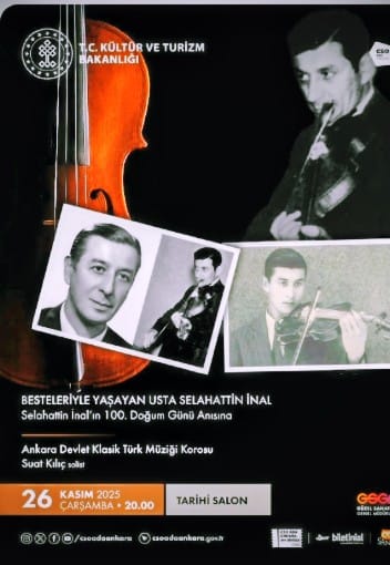 Gecede, Ankara Devlet Klasik Türk Müziği Korosu sahne alacak ve konserin solistliğini güçlü yorumuyla tanınan Suat Kılıç üstlenecek. Program boyunca İnal’ın ölümsüz besteleri seslendirilecek; sanatçının yaşamı, sanat yolculuğu ve Türk müziğine yaptığı katkıları anlatan özel görseller de salon ekranlarında yer alacak. Böylece katılımcılara hem müzikal hem de tarihi bir atmosfer sunulmuş olacak.