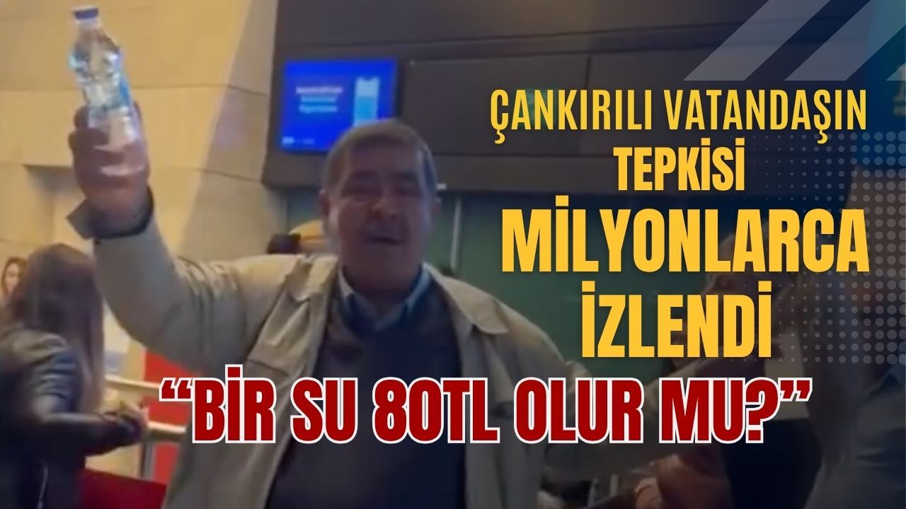 Ankara Esenboğa Havalimanı’nda bir vatandaşın su fiyatlarına gösterdiği tepki sosyal medyada gündem oldu. Çankırılı bir çiftçi, 80 TL’ye satılan suyu görünce isyan etti. Elinde su şişesiyle kameraya konuşan çiftçi, “Bir su 80 TL olur mu? Elim titredi, alamadım. Yazık, günah. Bu kadar da olmaz!” diyerek tepkisini dile getirdi.