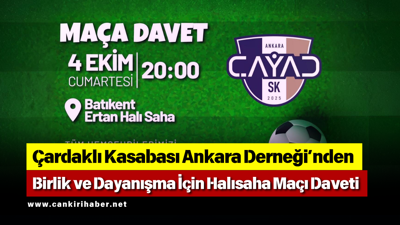 ÖZEL HABER/ÇAYAD Çardaklı Kasabası Ankara Dernek Başkanı Mehmet Daşan, 4 Ekim Cumartesi günü düzenlenecek halı saha maçı için hemşehrilerine davette bulundu.