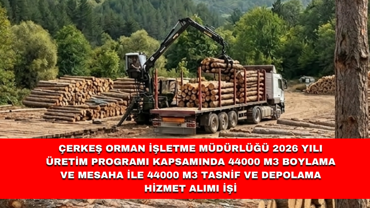 ÇERKEŞ ORMAN İŞLETME MÜDÜRLÜĞÜ 2026 YILI ÜRETİM PROGRAMI KAPSAMINDA 44000 M3 BOYLAMA VE MESAHA İLE 44000 M3 TASNİF VE DEPOLAMA HİZMET ALIMI İŞİ