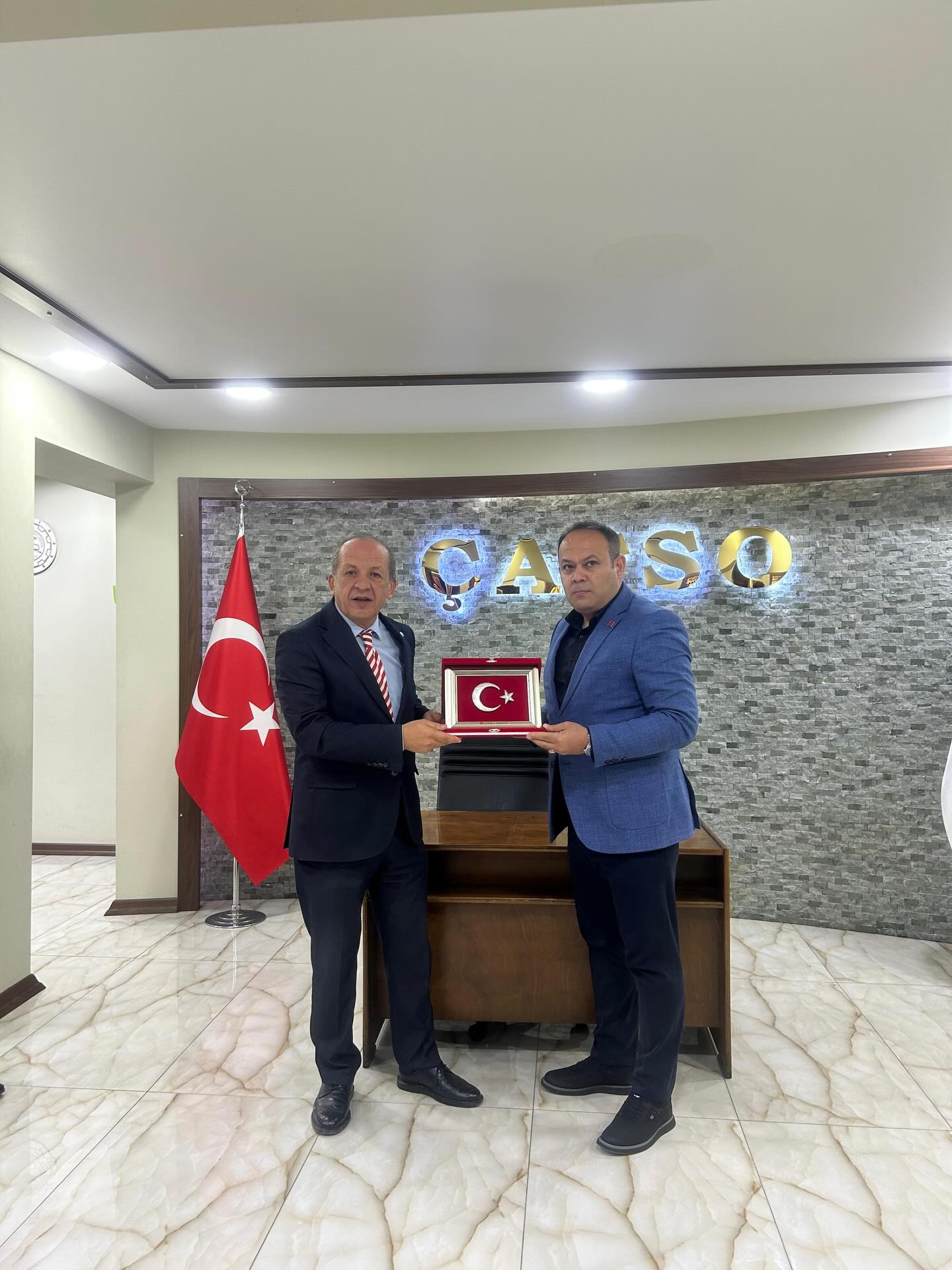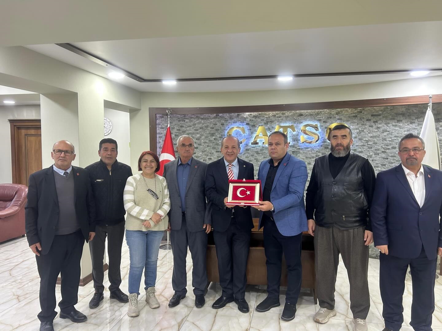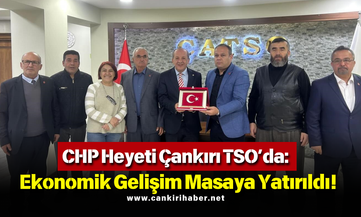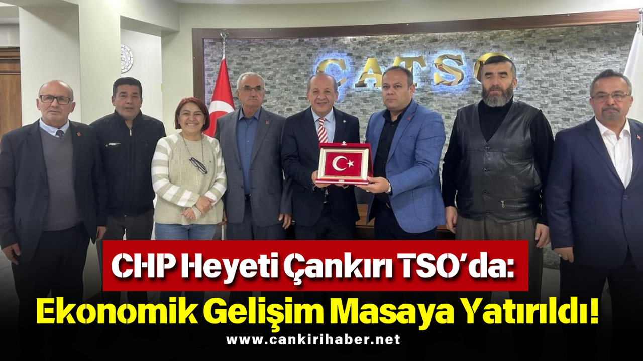 Cumhuriyet Halk Partisi (CHP) Çankırı İl Başkanı Galip Ağaoğlu, İl Kadın Kolları Başkanı Serpil Yaşar ve il yönetim kurulu üyeleriyle birlikte Çankırı Ticaret ve Sanayi Odası (TSO) Başkanı Hayrettin Çelikten’i ziyaret etti. Gerçekleştirilen ziyarette, Çankırı’nın ticari ve ekonomik gelişimi başta olmak üzere kentin mevcut durumu ve geleceğe yönelik yapılabilecek çalışmalar ele alındı.