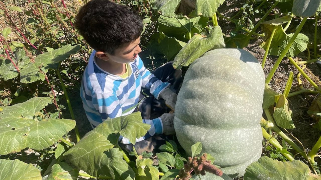 Diyarbakır’da çiftçi Yurdagül Çavdar, bahçesinde hasat sırasında 40 kiloya ulaşan iki dev bal kabağıyla karşılaştı. Bahçedeki fasulye, biber ve domatesleri de kendi tüketimi için yetiştiren Çavdar, kabakları gördüğünde büyük bir mutluluk yaşadı.