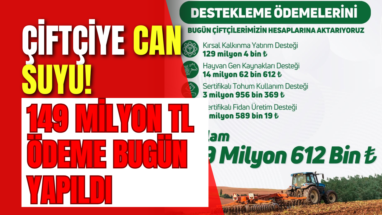 Tarım ve hayvancılık sektörüne yönelik destekler kapsamında çiftçilere yapılacak ödemeler bugün itibarıyla hesaplara aktarılmaya başlandı. Tarımsal üretimin sürdürülebilirliğini artırmak ve üreticiyi desteklemek amacıyla gerçekleştirilen ödemelerin toplam tutarı 149 milyon 612 bin TL olarak açıklandı.