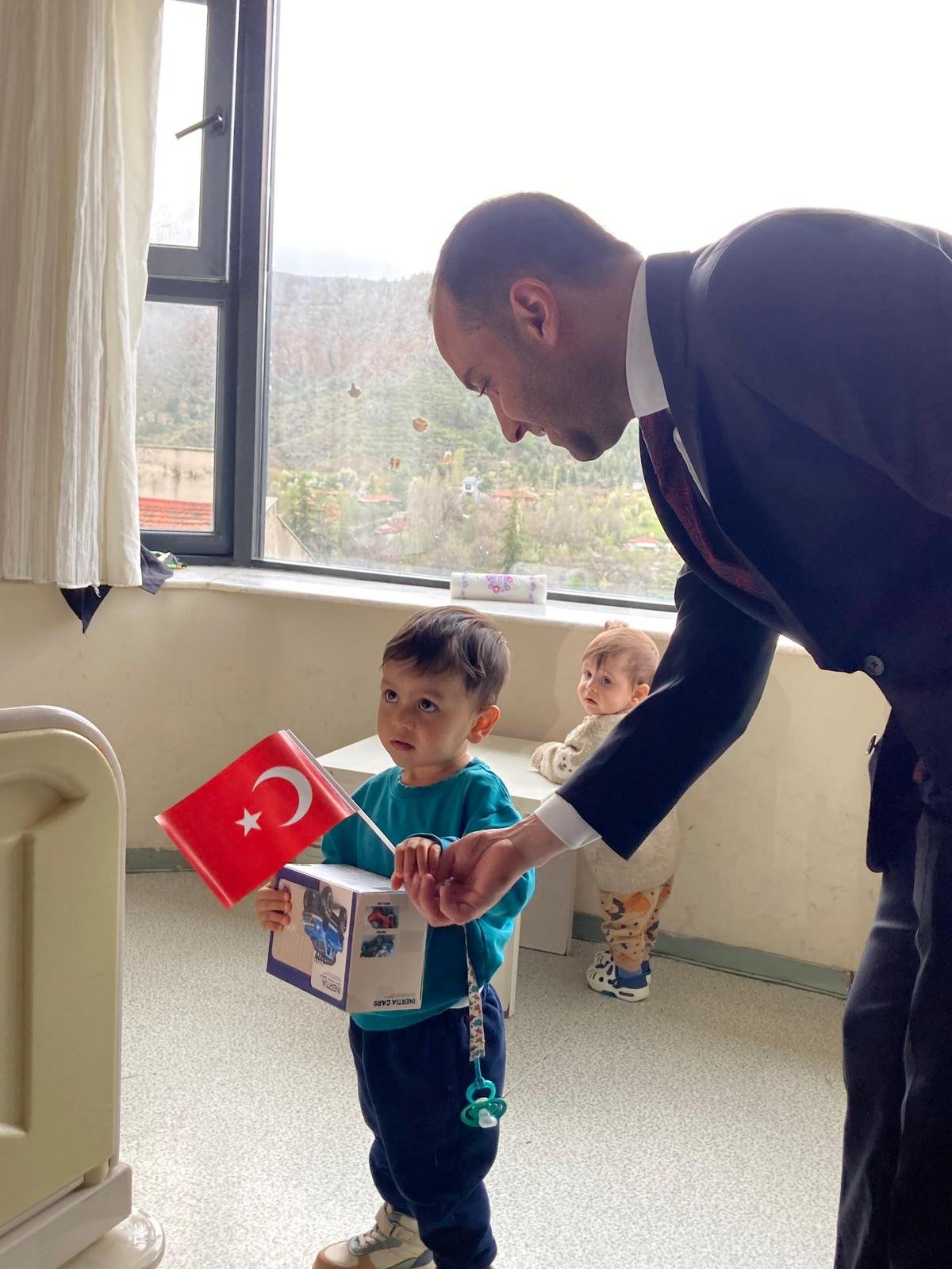 Ziyaret sırasında çocuklara çeşitli hediyeler verilirken, ailelerle de sohbet edilerek geçmiş olsun dilekleri iletildi. Bayram gününde gerçekleştirilen ziyaret, hastanede tedavi gören çocuklara moral oldu.