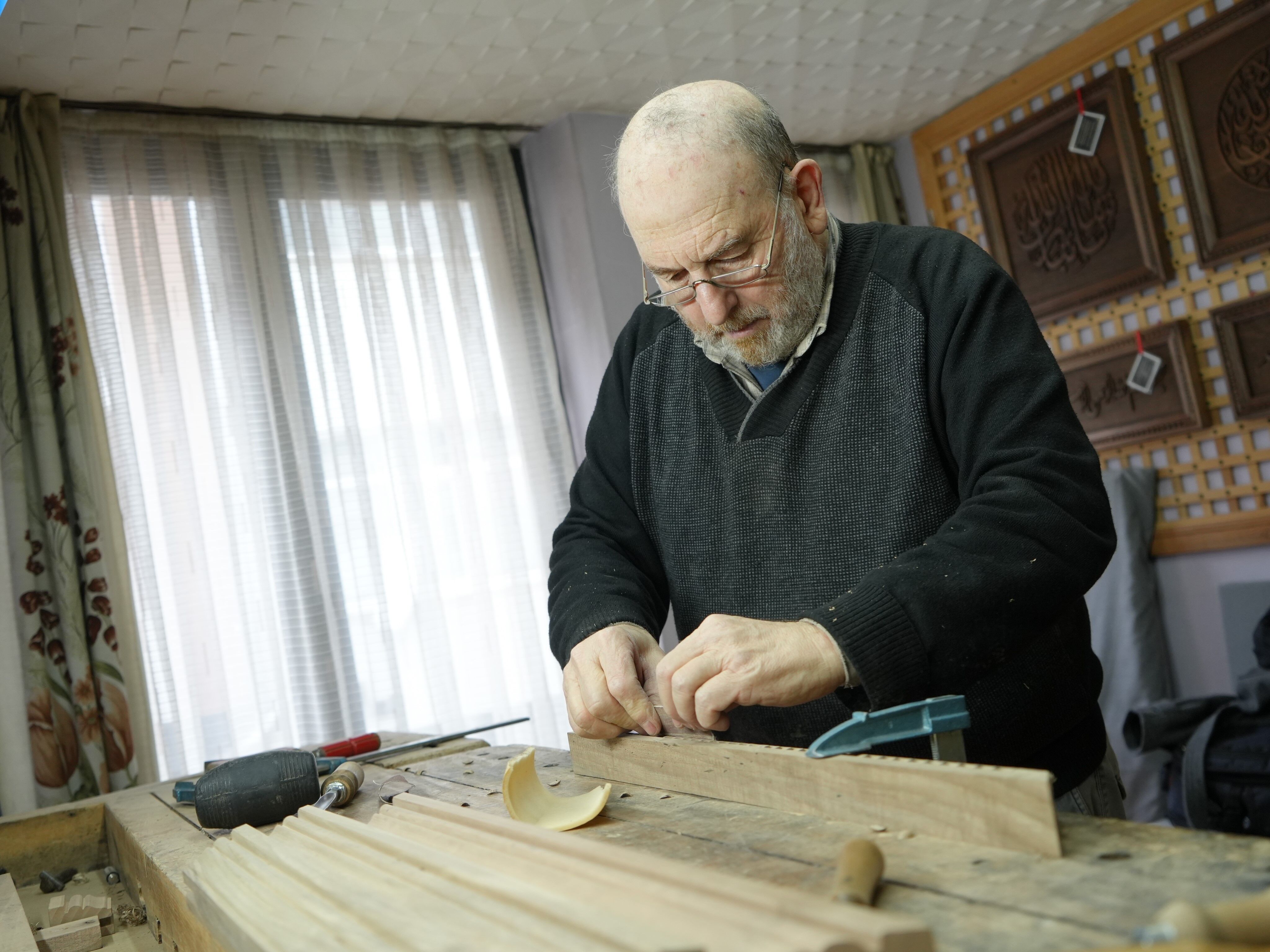 Mesleğe dedesinin atölyesinde başladığını anlatan Mustafa Özeflanili, çocukluk yıllarından itibaren marangozluk ve oymacılık işlerinin içinde büyüdüğünü söyledi.