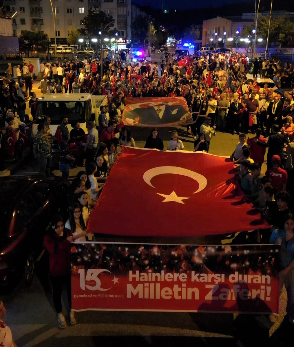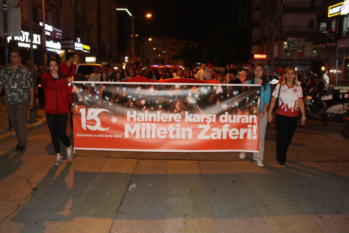 Demokrasiye bağlılığın ve milli iradeye sahip çıkmanın güçlü bir sembolü haline gelen yürüyüş, duygu dolu anlara sahne oldu. 7’den 70’e her yaştan vatandaşın yoğun ilgi gösterdiği etkinlikte, sık sık “Şehitler ölmez, vatan bölünmez” sloganları atıldı.