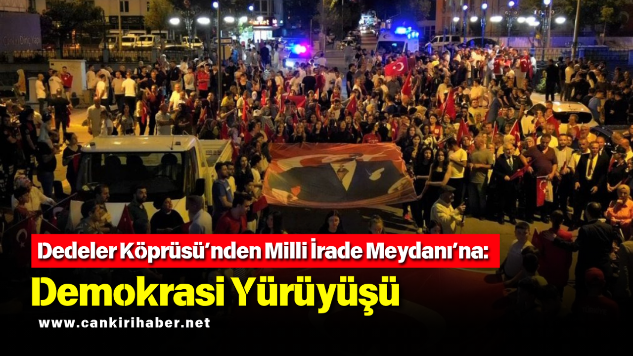 Saygı duruşu ve İstiklal Marşı’nın ardından başlayan yürüyüş, Çankırı Valisi Fırat Taşolar, il protokolü, kamu kurum temsilcileri, sporcular, sivil toplum kuruluşları ve çok sayıda vatandaşın katılımıyla Dedeler Köprüsü’nden start aldı. Katılımcılar, ellerinde Türk bayraklarıyla Milli İrade Meydanı’na kadar yürüyerek 15 Temmuz şehitlerini andı.
