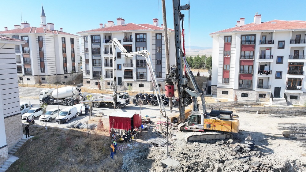Cumhuriyet tarihinin en büyük sosyal konut hamlelerinden biri olarak gösterilen “İlk Evim, İlk İş Yerim” projesi kapsamında 3. Etap TOKİ konutlarının temel kazma ve fore kazık çalışmaları hız kazandı.