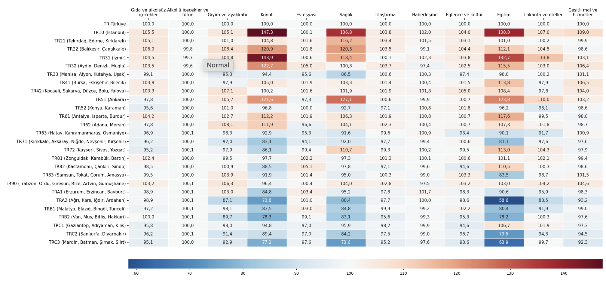 Öte yandan lokanta ve oteller grubunda TR82 bölgesi 100,3 endeksle Türkiye ortalamasına yakın bir tablo çizdi. Ev eşyası grubunda ise TR82 bölgesi, 105,1 endeksle dikkat çekici bir artış gösterdi.