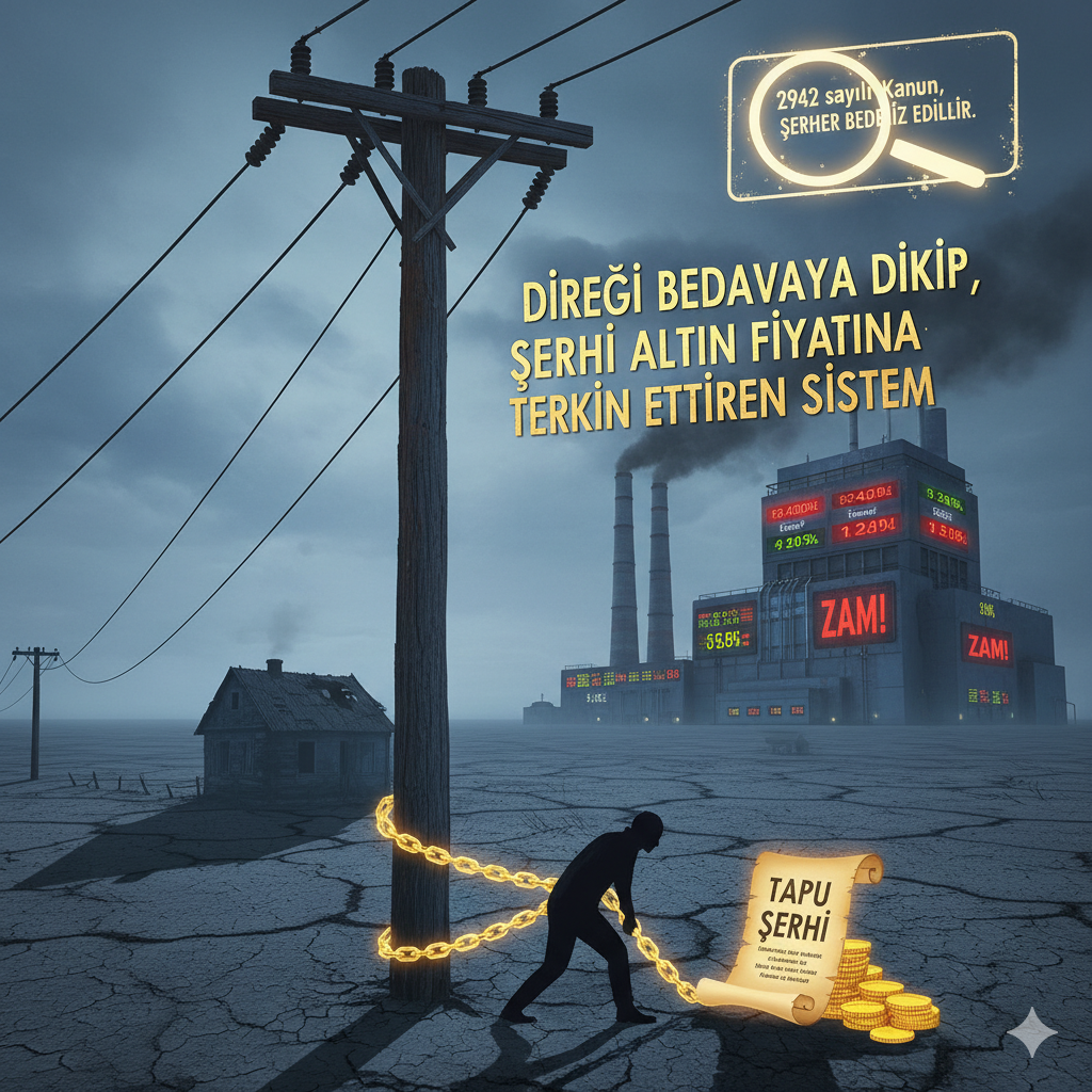 Bir tarafta vatandaşa hiçbir faydası olmayan direk ve trafo işgali, diğer tarafta yıllarca zamlı fiyatlarla elektrik satıp milyarlar kazanan bir kurum. Ve işin sonunda, kaldırılan şerhi terkin etmek için vatandaştan astronomik para istenmesi. Bu tablo, mülkiyet hakkını korumakla görevli olan devlet anlayışıyla değil, vatandaşını ezen bir zihniyetle açıklanabilir.