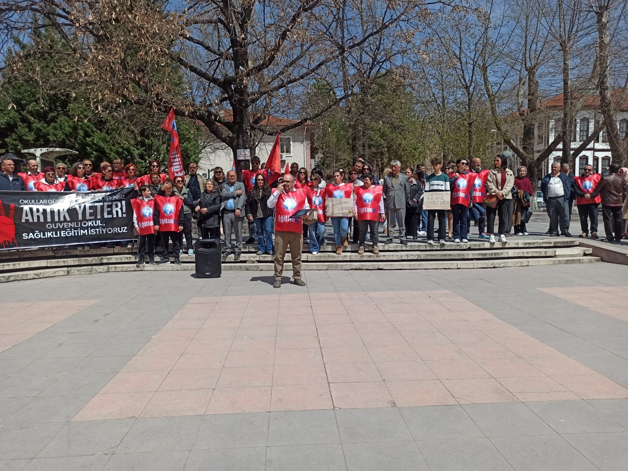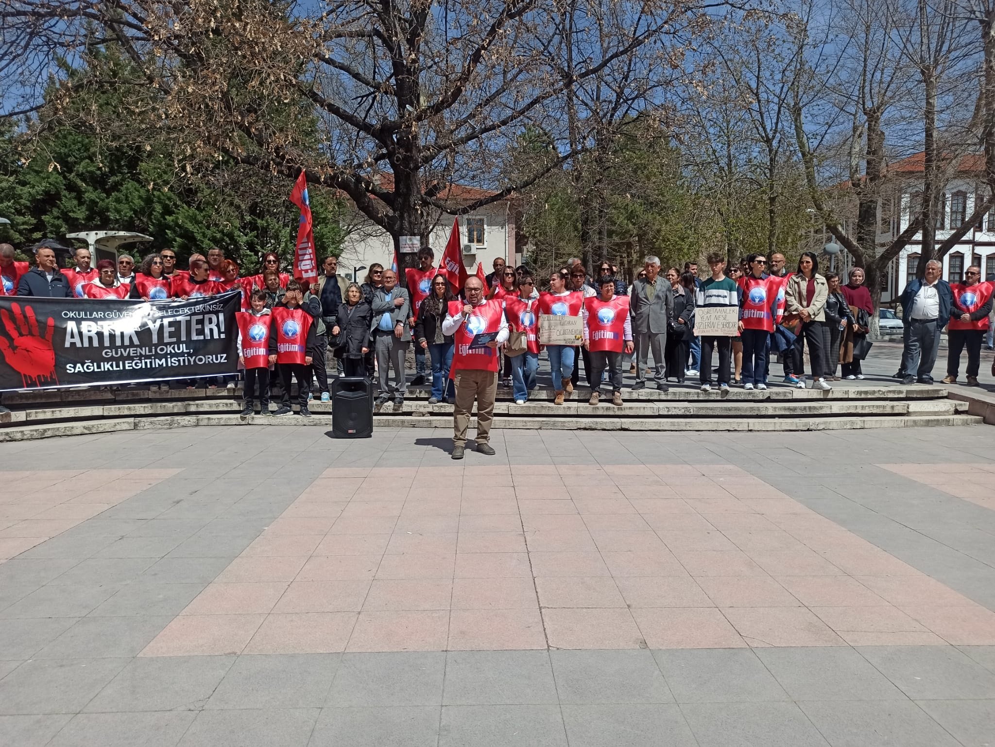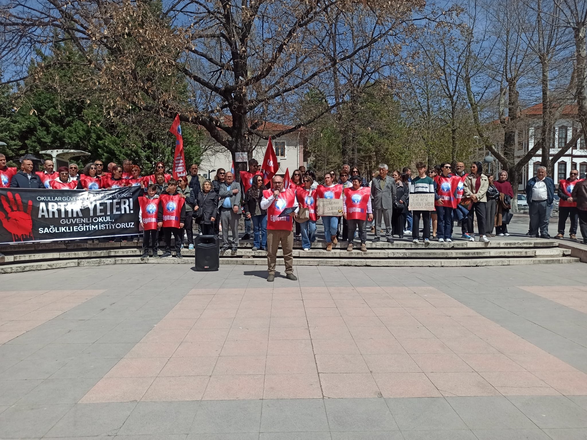 Bugün burada hesap sormak için bulunuyoruz. Çünkü okullar kan gölüne dönüyor, ama sorumlular hâlâ izlemekle yetiniyor!