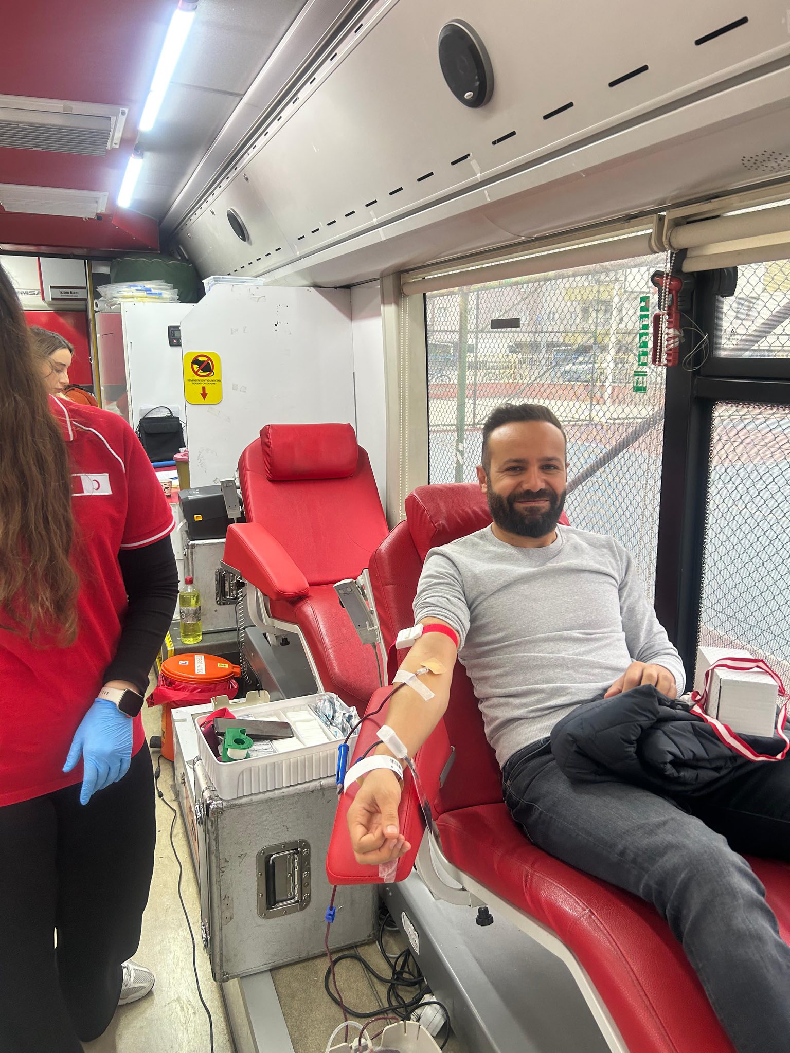 Muazzez Ser-Ved Amaratoğlu Ortaokulunda gerçekleştirilen kan bağışı etkinliği öğretmenler ve öğrenciler tarafından yoğun ilgi gördü.