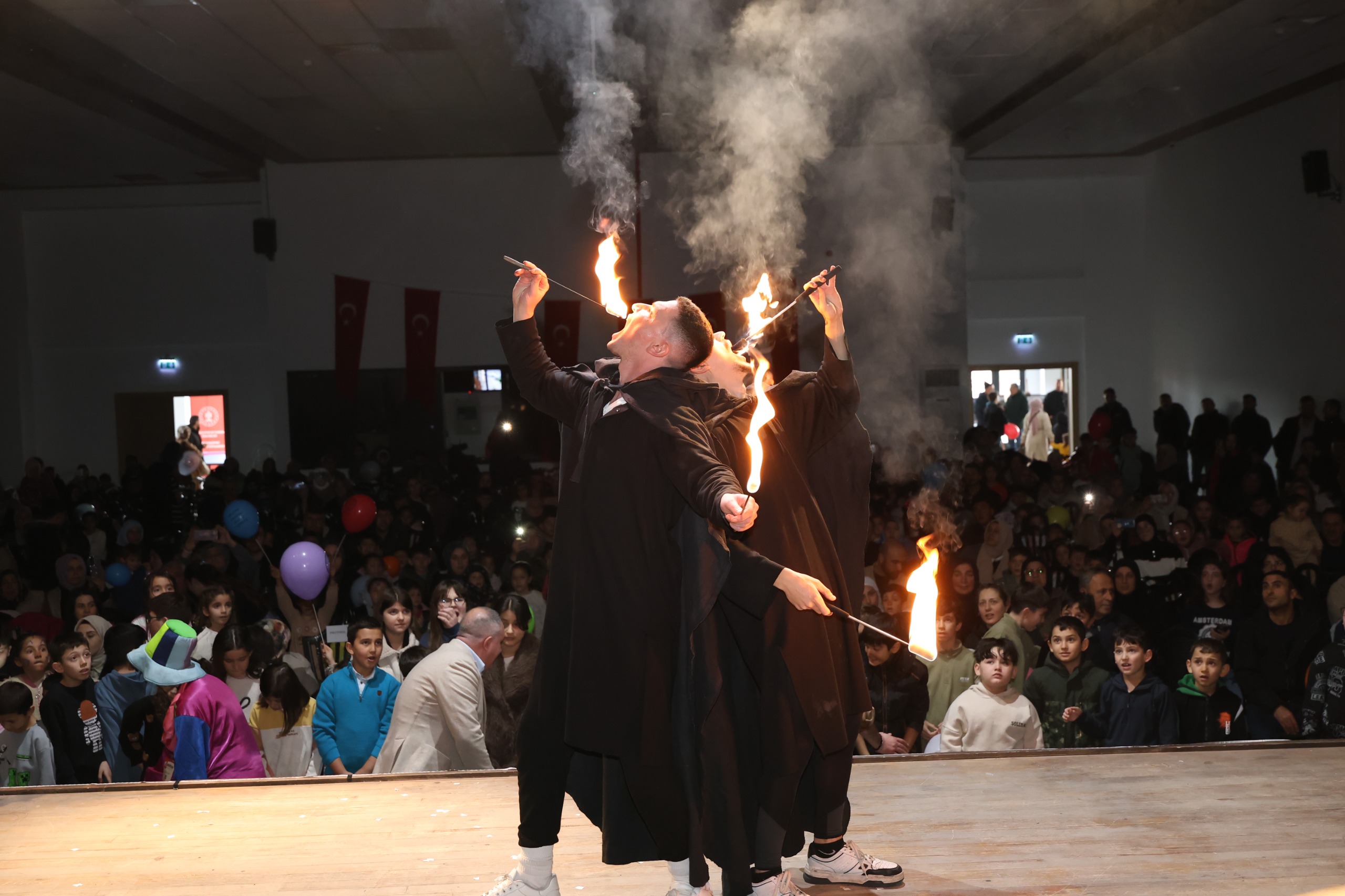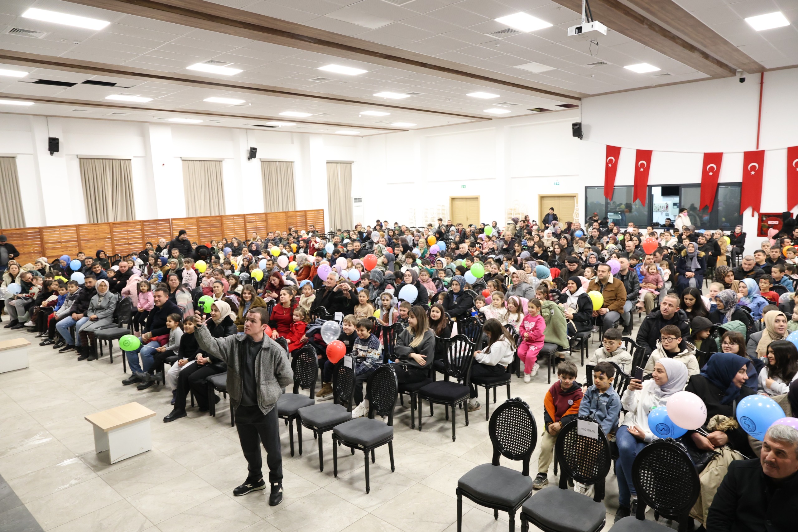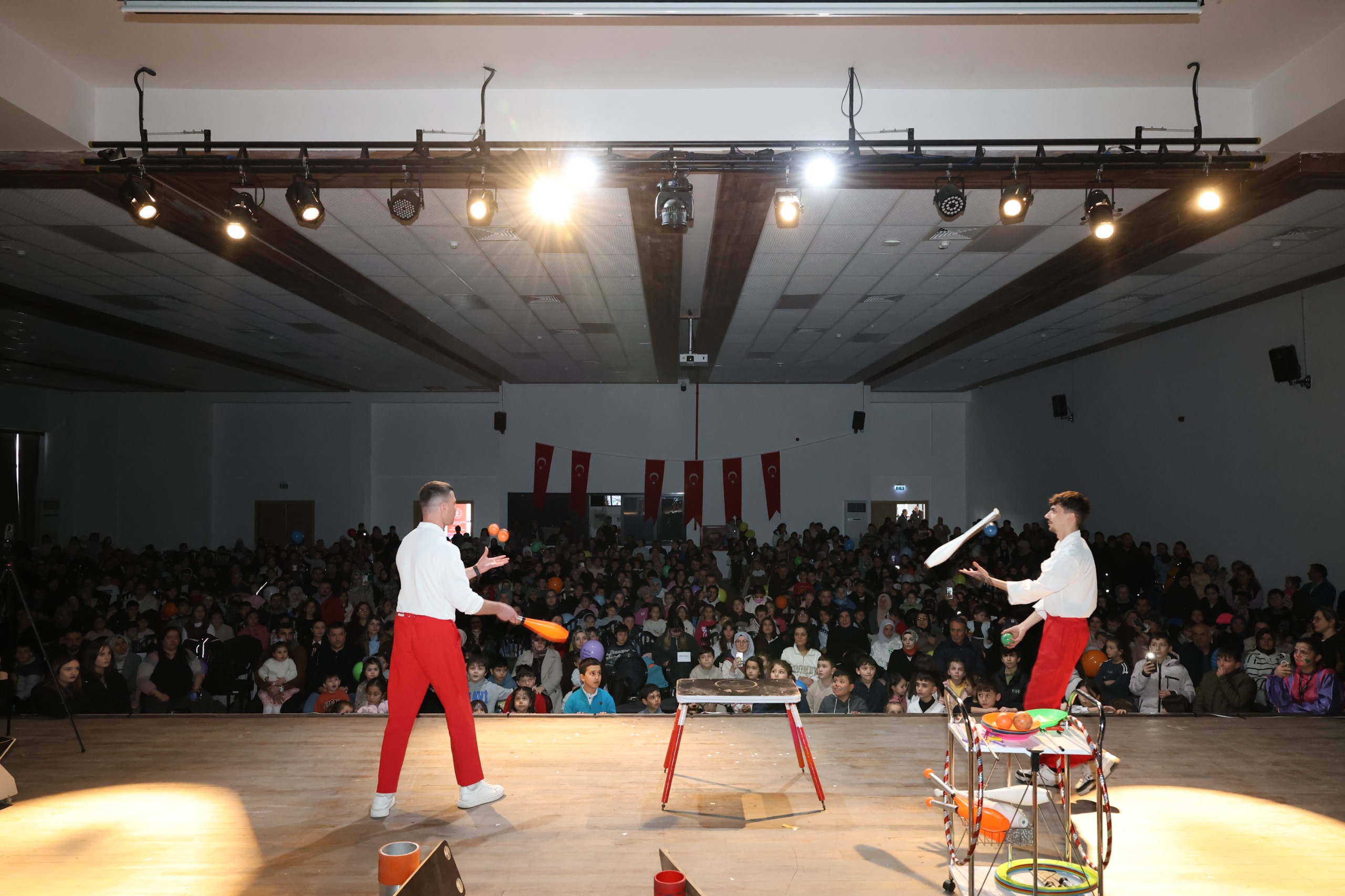 Yaklaşık bin kişinin katıldığı programda çocuklar; renkli sirk gösterileri, yüz boyama etkinlikleri, balon dağıtımı, pamuk şeker ve patlamış mısır ikramlarıyla doyasıya eğlendi. Salonu dolduran kahkahalar ve çocukların gözlerindeki mutluluk, etkinliğin amacına ulaştığını açıkça ortaya koydu. Ailelerin de yoğun ilgi gösterdiği program, hem çocuklara hem de velilere keyifli anlar yaşattı.