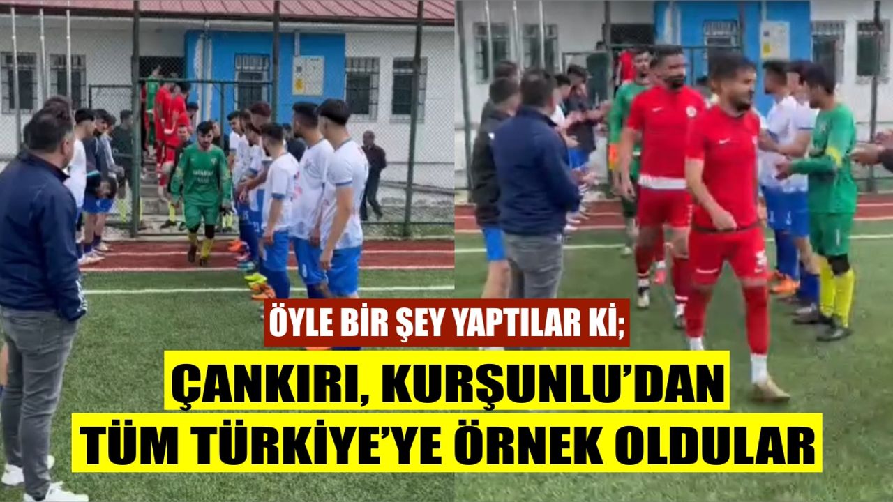 Şampiyonluğu geçtiğimiz hafta garantilenen 1074 Çankırıspor'u sahaya girerken alkışlarla karşılayan Kurşunlu Belediyespor'lu futbolcular bu güzel hareket ile tüm Türkiye'ye örnek oldular.