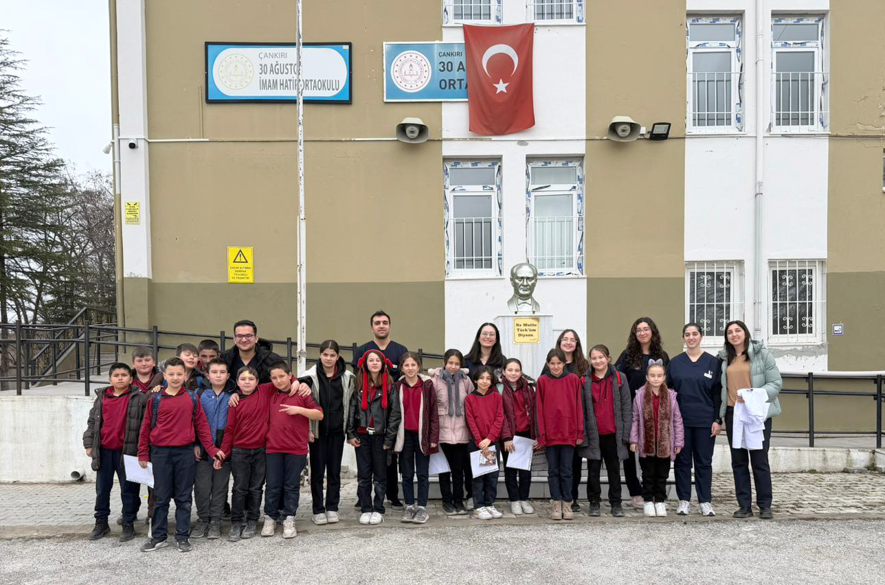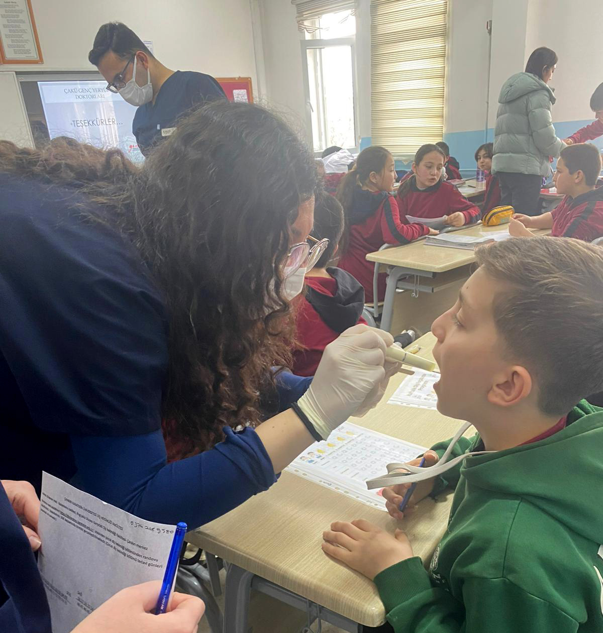 Çankırı Karatekin Üniversitesi (ÇAKÜ) Diş Hekimliği Fakültesi öğrencilerinden oluşan Genç Yeryüzü Doktorları Topluluğu, toplumsal katkı ve sağlık farkındalığını artırmaya yönelik örnek bir projeye imza attı. “Yeryüzüne Dokun” temasıyla gerçekleştirilen etkinlik kapsamında Çankırı 30 Ağustos Ortaokulu ziyaret edilerek öğrencilere yönelik kapsamlı ağız ve diş sağlığı taraması yapıldı.
