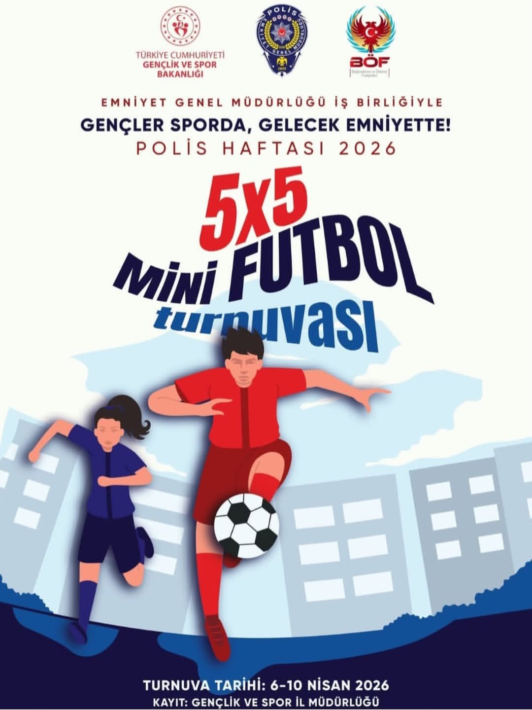 Çankırı’da gençlere yönelik dikkat çeken bir proje hayata geçiriliyor. Çankırı Emniyet Müdürlüğü ile Gençlik ve Spor İl Müdürlüğü iş birliğinde yürütülen “Gençler Sporda, Gelecek Emniyette” projesi kapsamında lise öğrencilerine yönelik 5×5 futbol turnuvası düzenlenecek.