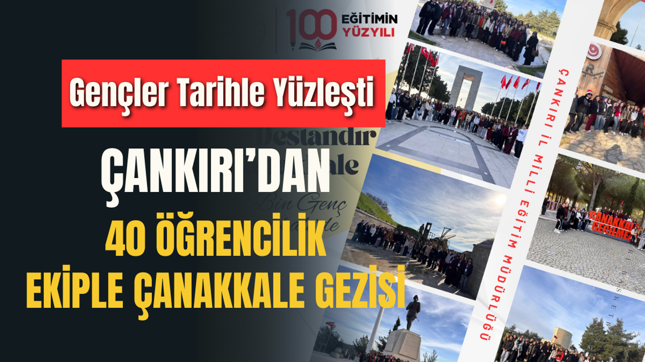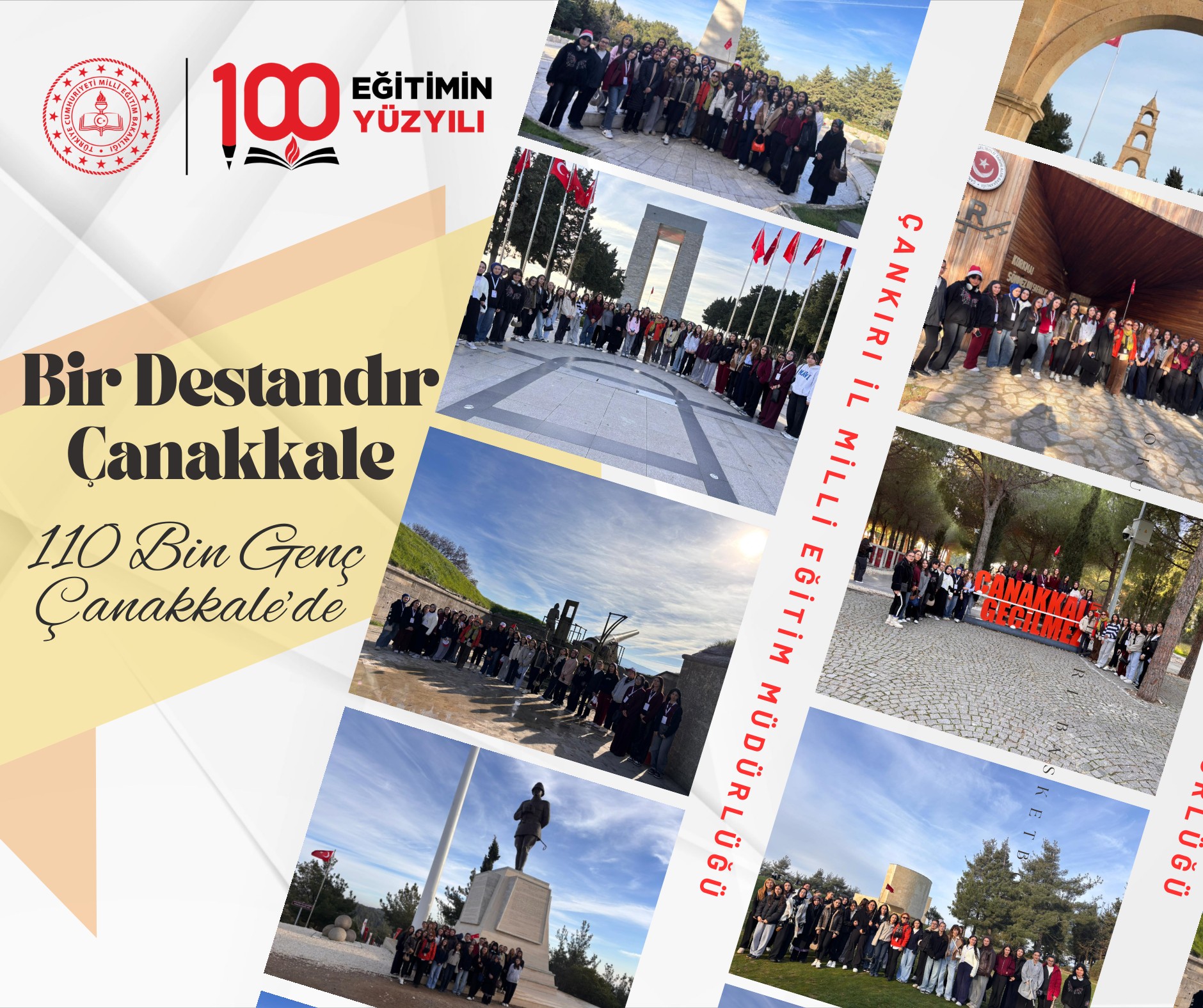 Çankırı İl Millî Eğitim Müdürlüğü ile Gençlik ve Spor İl Müdürlüğü’nün koordine ettiği ve Gençlik ve Spor Bakanlığı tarafından yürütülen “Bir Destandır Çanakkale – 110 Bin Genç Çanakkale’de” projesi kapsamında düzenlenen gezilerin 22. dönemi başarıyla tamamlandı. 2–3 Aralık 2025 tarihlerinde gerçekleştirilen programa Eldivan, Korgun ve Kızılırmak ilçelerinden toplam 40 öğrenci katılım sağladı. Gezi boyunca öğrencilere Gençlik Merkezi Çalışanı Sümeyye Şıvkın ile Şehit Mustafa Yahya Mertcan MTAL Tarih Öğretmeni Nagihan Molozoğlu rehberlik etti.