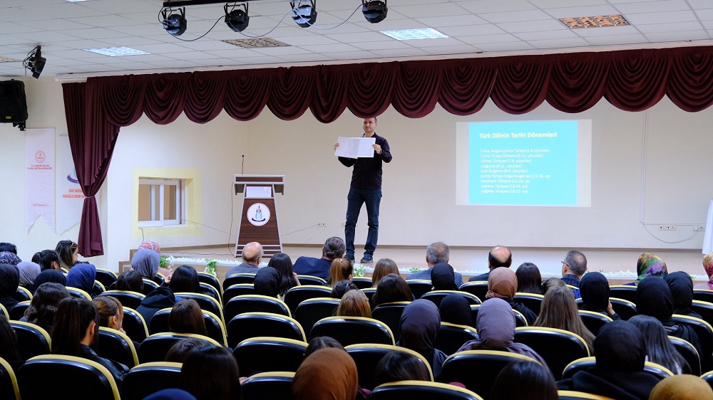 Çankırı Karatekin Üniversitesi İnsan ve Toplum Bilimleri Fakültesi Dr. Öğr. Üyesi Serkan Cihan, Hacı Muradı Veli İmam Hatip Lisesi’nde “Türk Dünyasında Dil, Alfabe ve Temel Eserler” başlıklı bir söyleşi gerçekleştirdi. Etkinliğe İl Milli Eğitim Müdürü Muammer Öztürk, Şube Müdürü Mehmet Marancı, okul yöneticileri, öğretmenler ve öğrenciler katıldı.