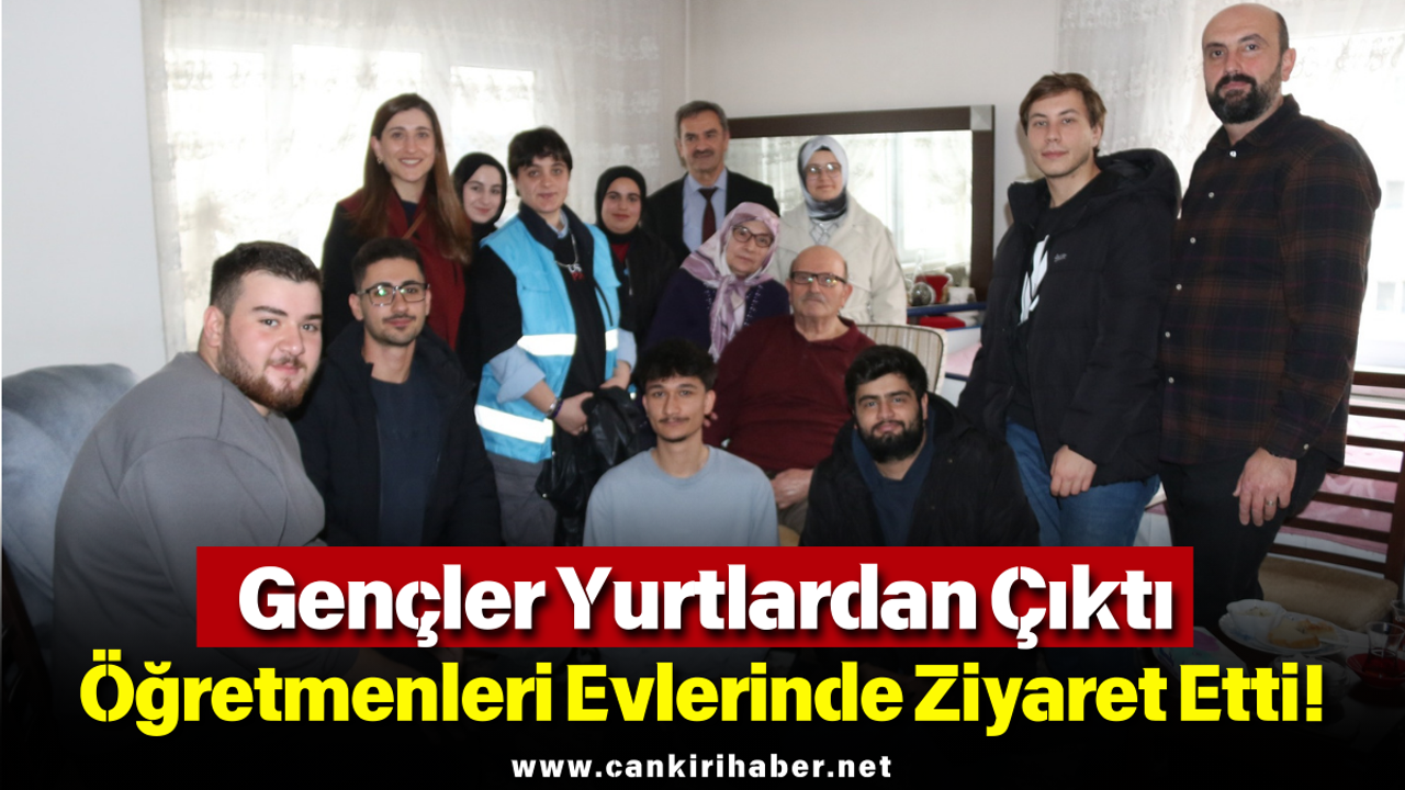24 Kasım Öğretmenler Günü dolayısıyla Çankırı’da anlamlı bir etkinliğe imza atıldı. Gençlik ve Spor Bakanlığı’na bağlı yurtlarda kalan üniversite öğrencileri, Çankırı Gençlik ve Spor İl Müdürü Sadık Ak’ın öncülüğünde değerli öğretmenler Nesrin Özkan, Orhan Özkan ve Mustafa Çelik’i evlerinde ziyaret etti. Öğretmenler Günü’ne özel düzenlenen bu sıcak buluşma, öğrenciler ile öğretmenler arasında duygusal ve unutulmaz anlara sahne oldu.