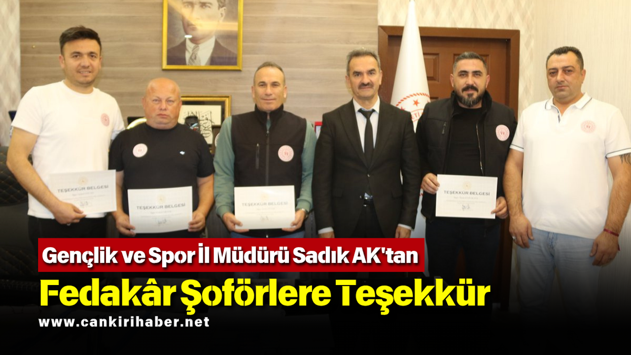 ÖZEL HABER/ Çankırı Gençlik ve Spor Müdürü Sadık Ak, antrenman, müsabaka ve diğer tüm faaliyetlerde çalışan şoförlere teşekkür belgesi takdim ederek emeklerini ödüllendirdi.